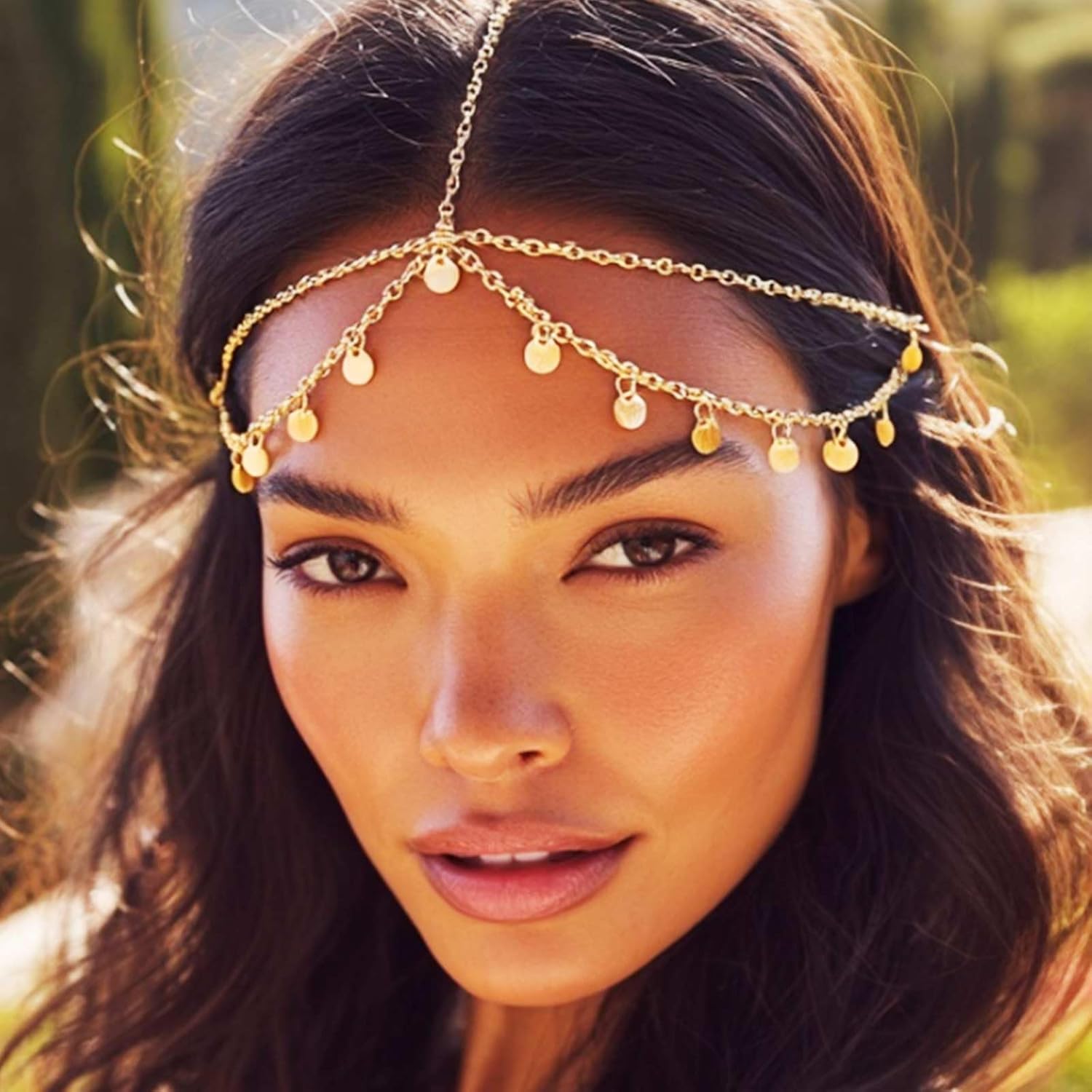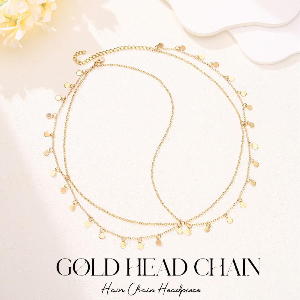 Brishow Boho Sequin Head Chain Jewelry Gold Layered Head Piece for Women