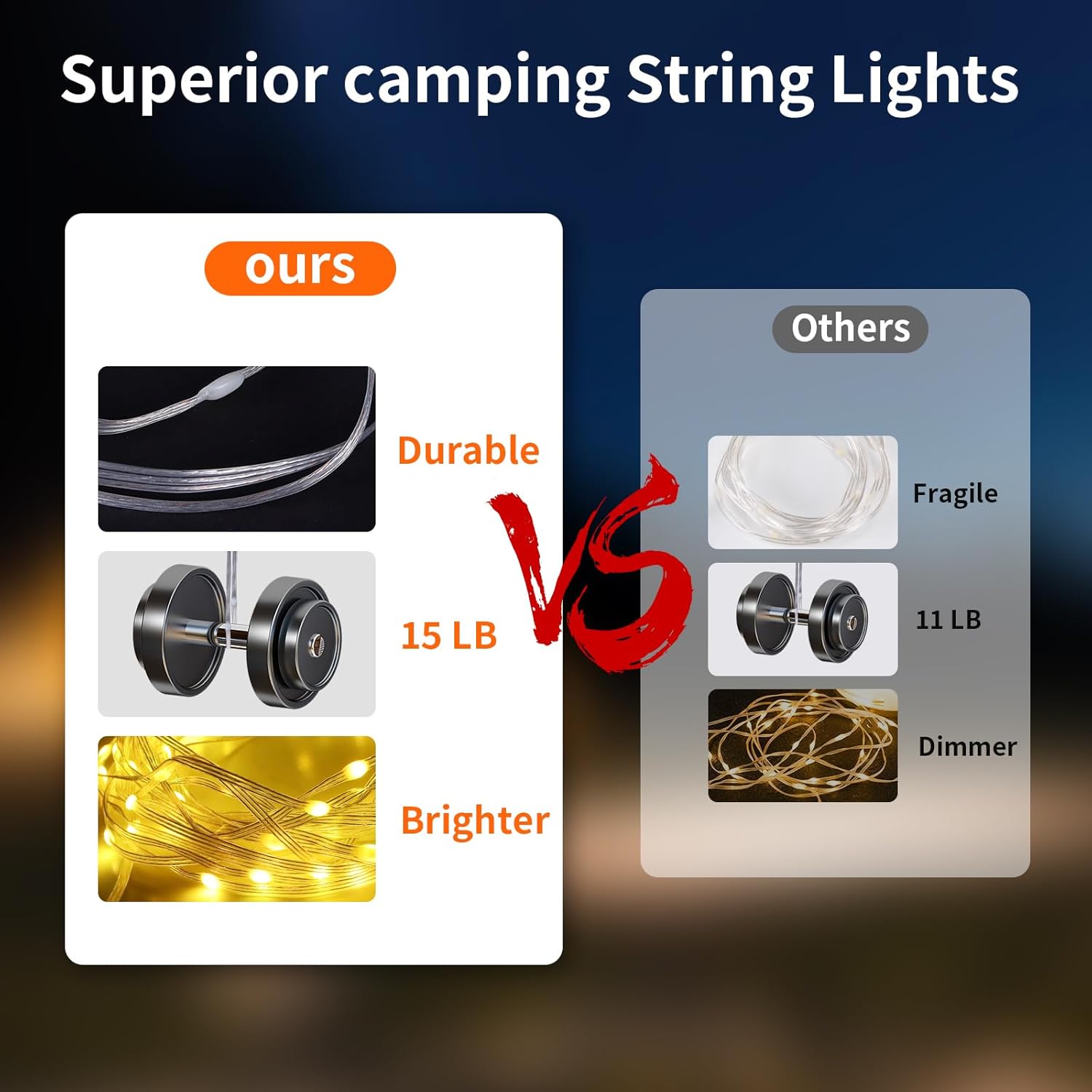 3 in 1 Multifunctional Camping Lights: Phylosal Camping String Lights combine camping lights, string lights, work lights. It can be used as camping lighting, string lights outdoor and distress signal lights.