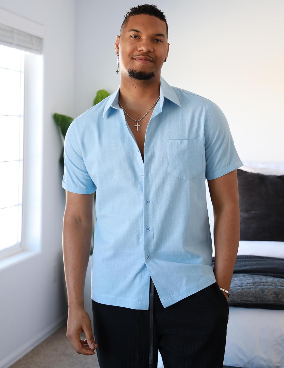 COOFANDY Mens Short Sleeve Button Down Shirts 100% Cotton Beach Style Textured Shirts