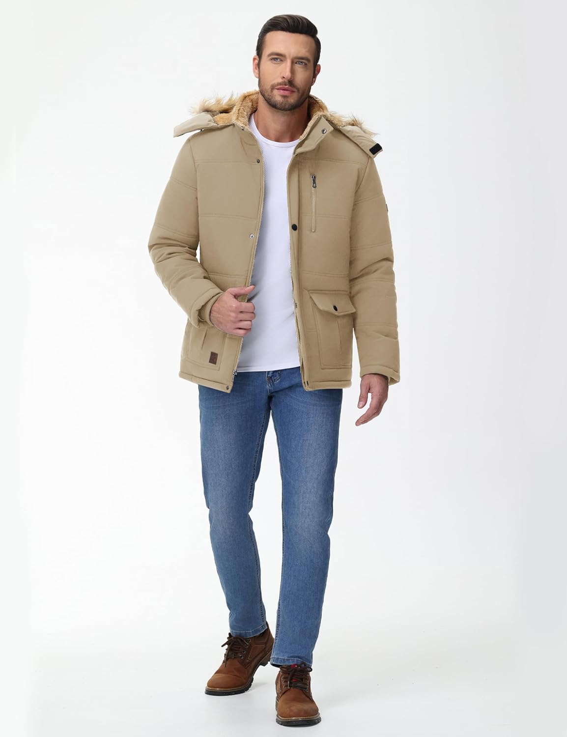 Cotrasen Men’s Winter Jackets Thick Hooded Coats with Pockets Men’s Parka CoatMen’s Parka Coat