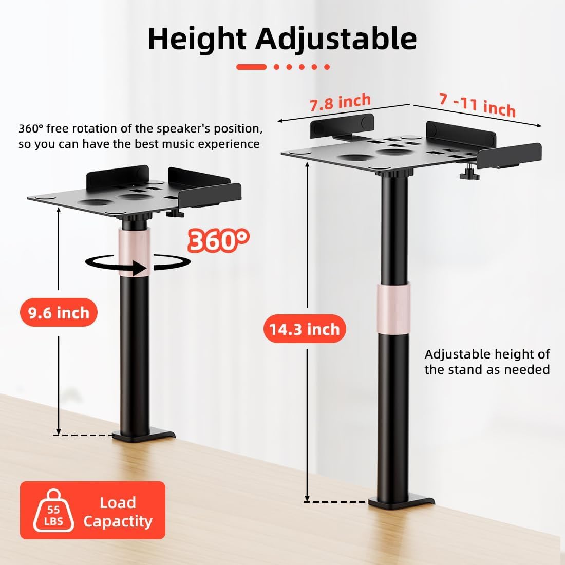 [Adjustable Height] Desktop speaker stands adjust the height from 9.5-14 inches, you can by turning the rose gold knob on the telescopic tube exquisite appearance is your best choice