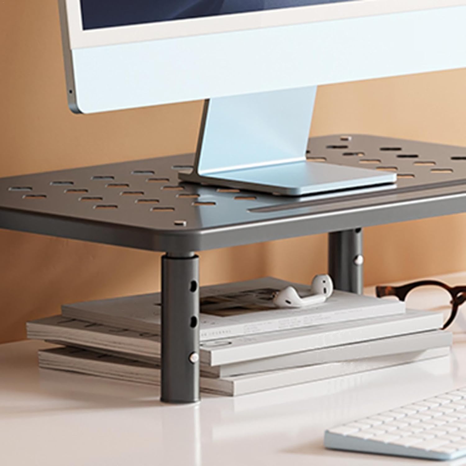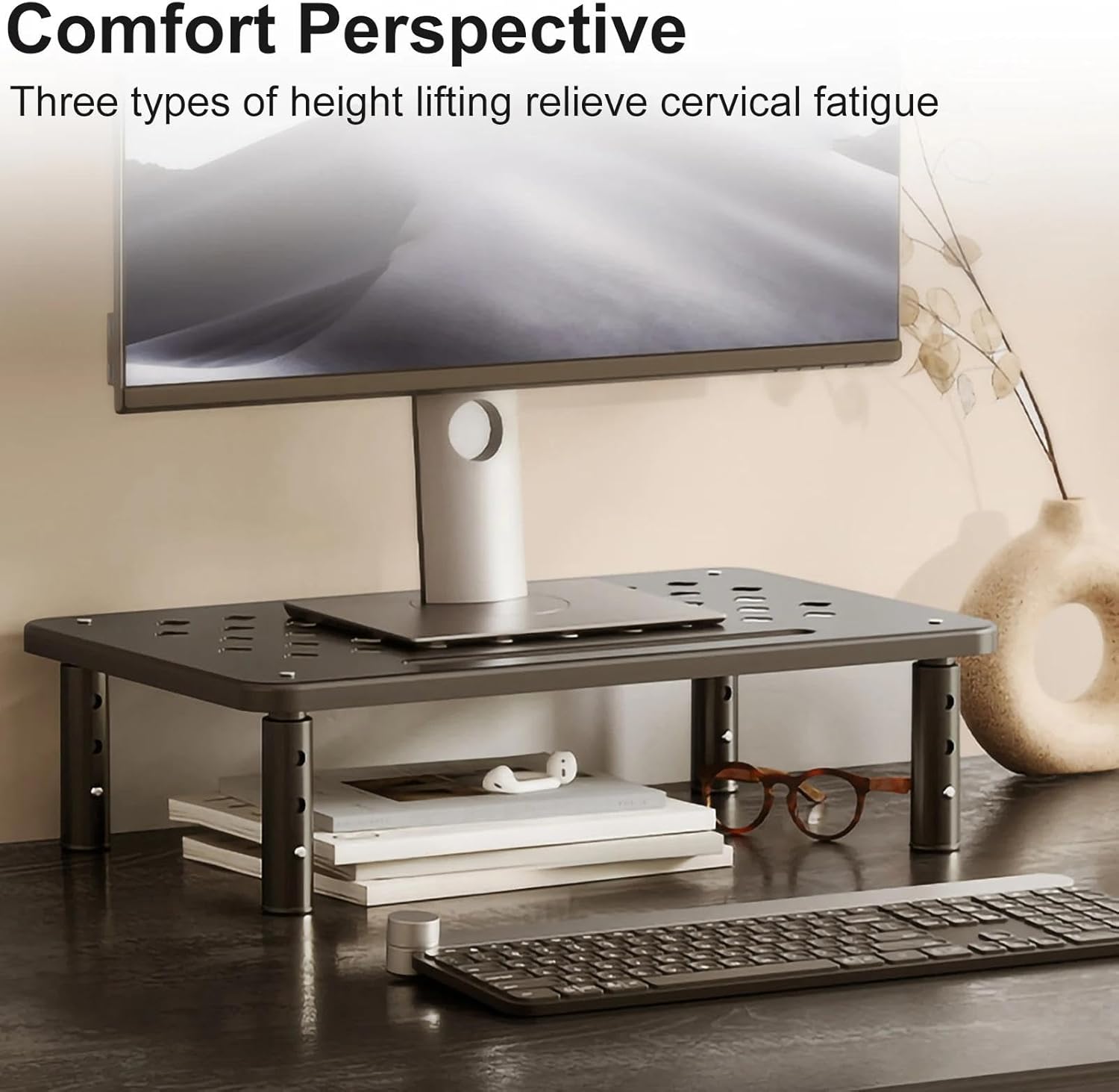 Entilation Hole Design: With a thoughtfully designed ventilation system, our monitor stand ensures efficient air circulation. You can also stack multiple stands to maximize desk space and productivity.