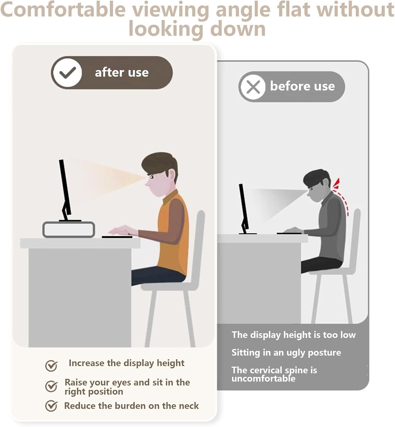Adjustable Design: Elevate your screen with an adjustable design featuring 3 height settings, progressively enhancing comfort and alleviating neck and shoulder fatigue.