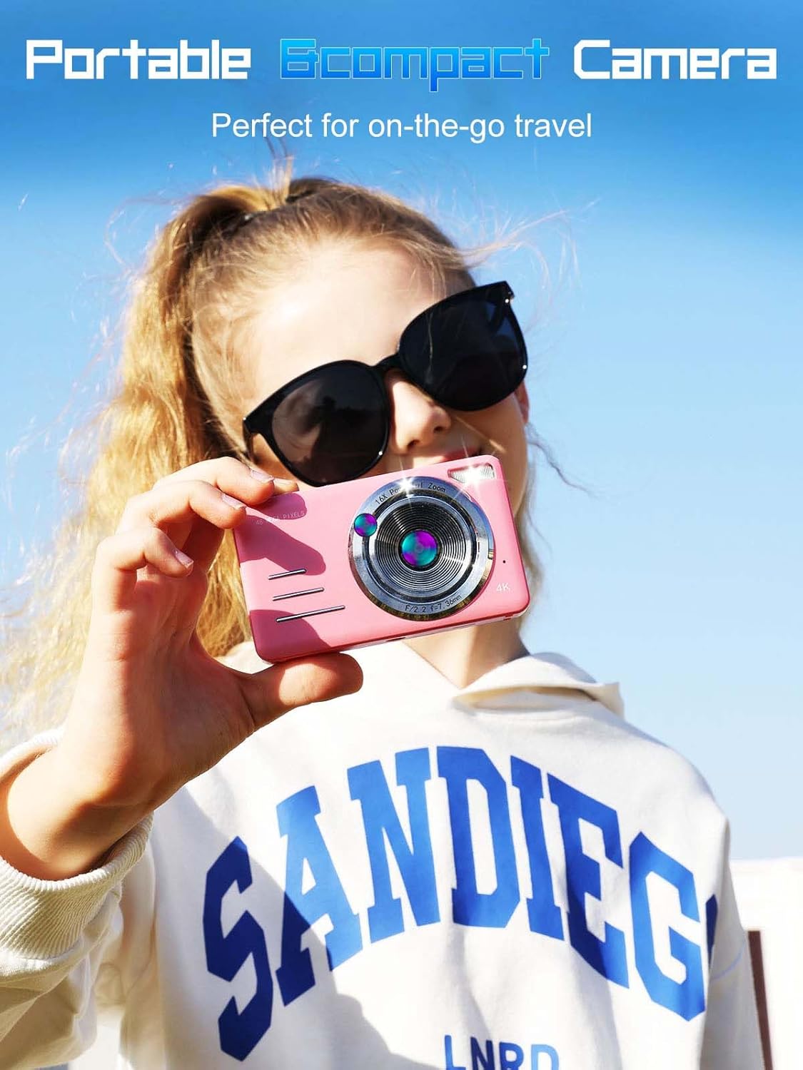 [Capture Every Detail in 4K]This compact digital camera delivers 4K video and stunning 64MP photos—perfect for capturing life’s best moments in crisp, vivid quality. Whether you’re filming your pet or your trip, it never misses the details.
