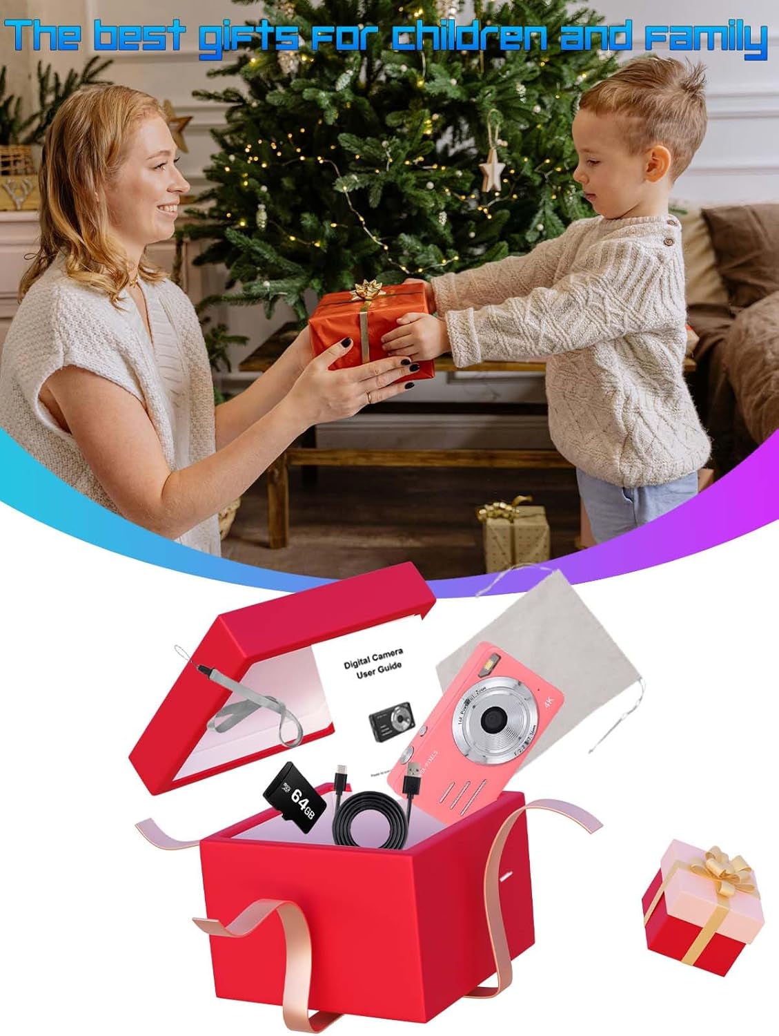 [Ready to Use, Right Out of the Box]No need to buy extras—this digital camera comes with a 64GB microSD card and a 1500mAh rechargeable battery. Perfect for beginners or as a thoughtful gift for teens or kids.
