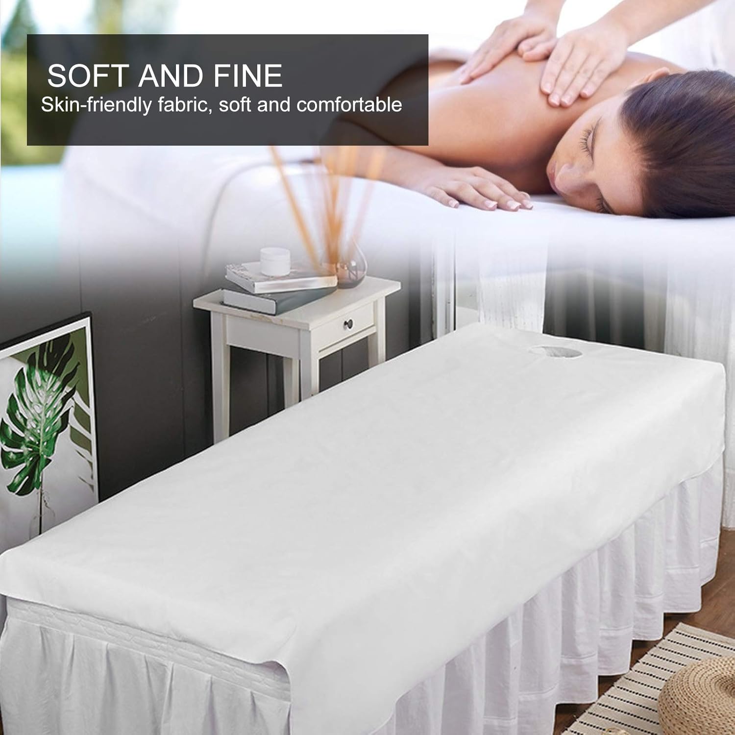 Middle hole design — The breathable bed sheet is designed with a middle hole to ensure smooth breathing during the massage process without pressing on the face, accurate bed hole measurement, hanging cloth design, smooth hand feeling and good absorption. So that they can relax more fully while enjoying beauty massage.