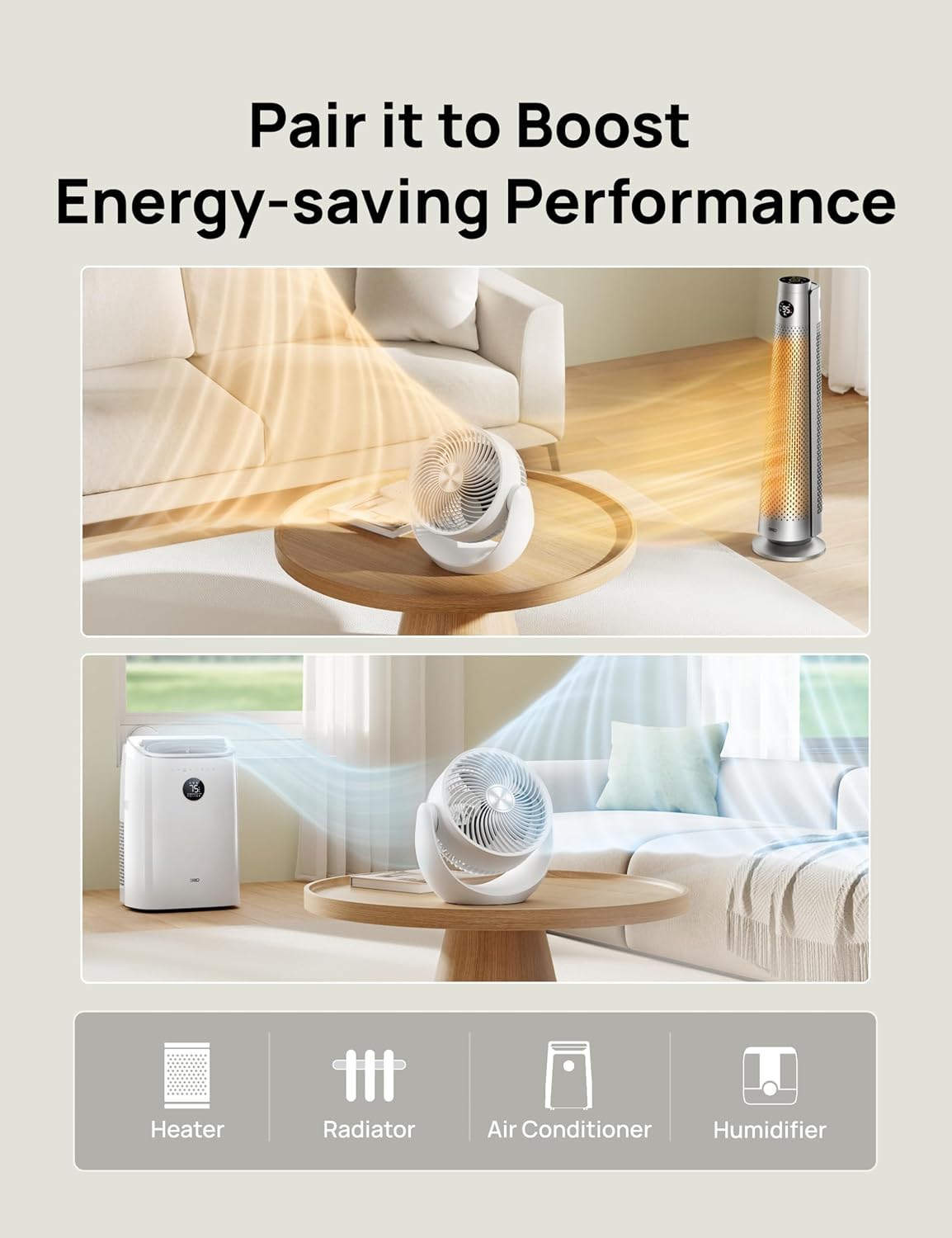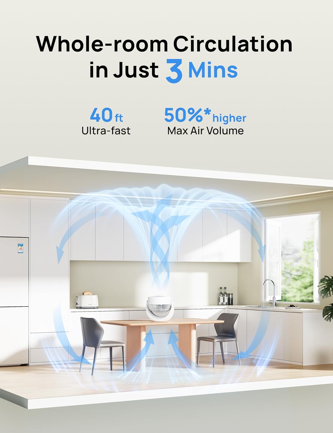 3-𝙈𝙞𝙣𝙪𝙩𝙚 𝙒𝙝𝙤𝙡𝙚 𝙍𝙤𝙤𝙢 𝘾𝙞𝙧𝙘𝙪𝙡𝙖𝙩𝙞𝙤𝙣:With airflow dynamics design, the Dreo fan directs turbine airflow to agitate room air, providing 800 CFM powerful airflow. Achieves full-room circulation in 3 minutes without any blind spots in airflow coverage.