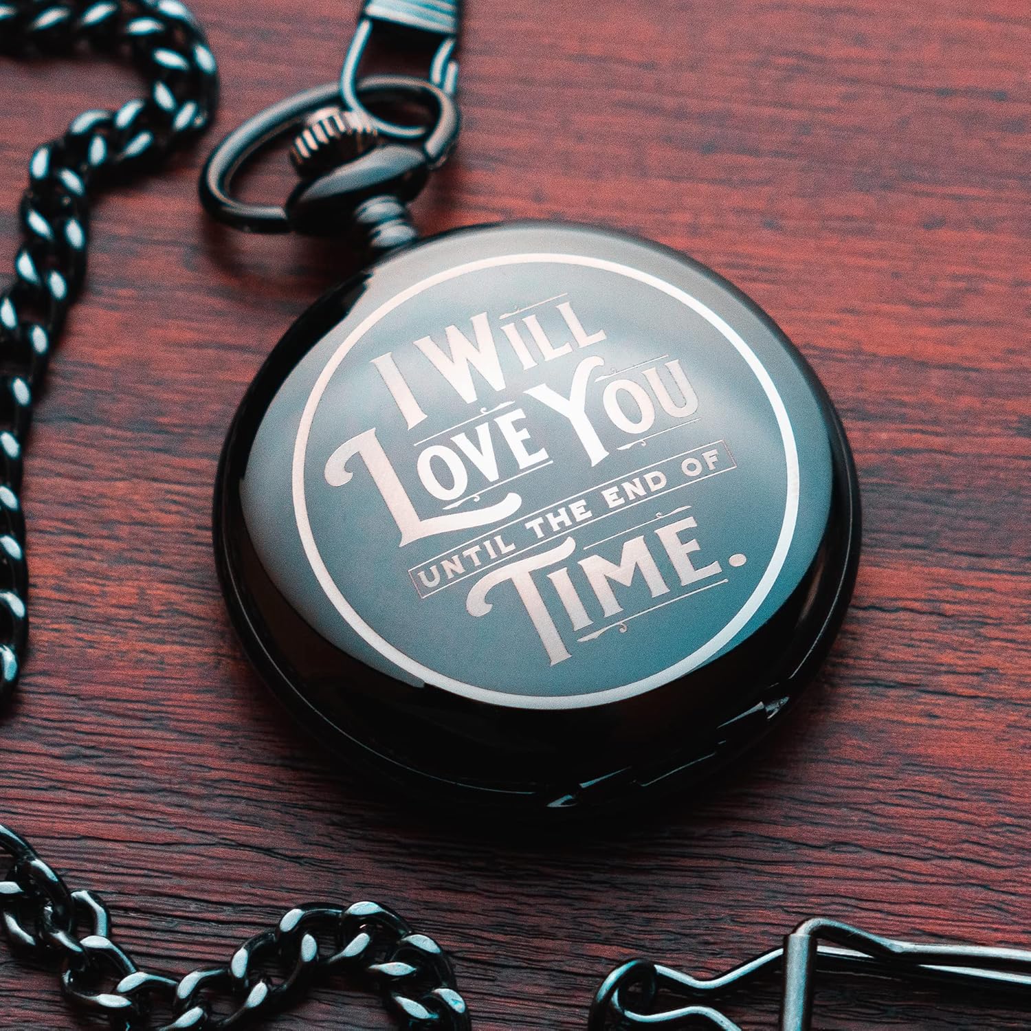 Engraved Pocketwatch for Husband or Boyfriend – I Will Love You Until the End of Time