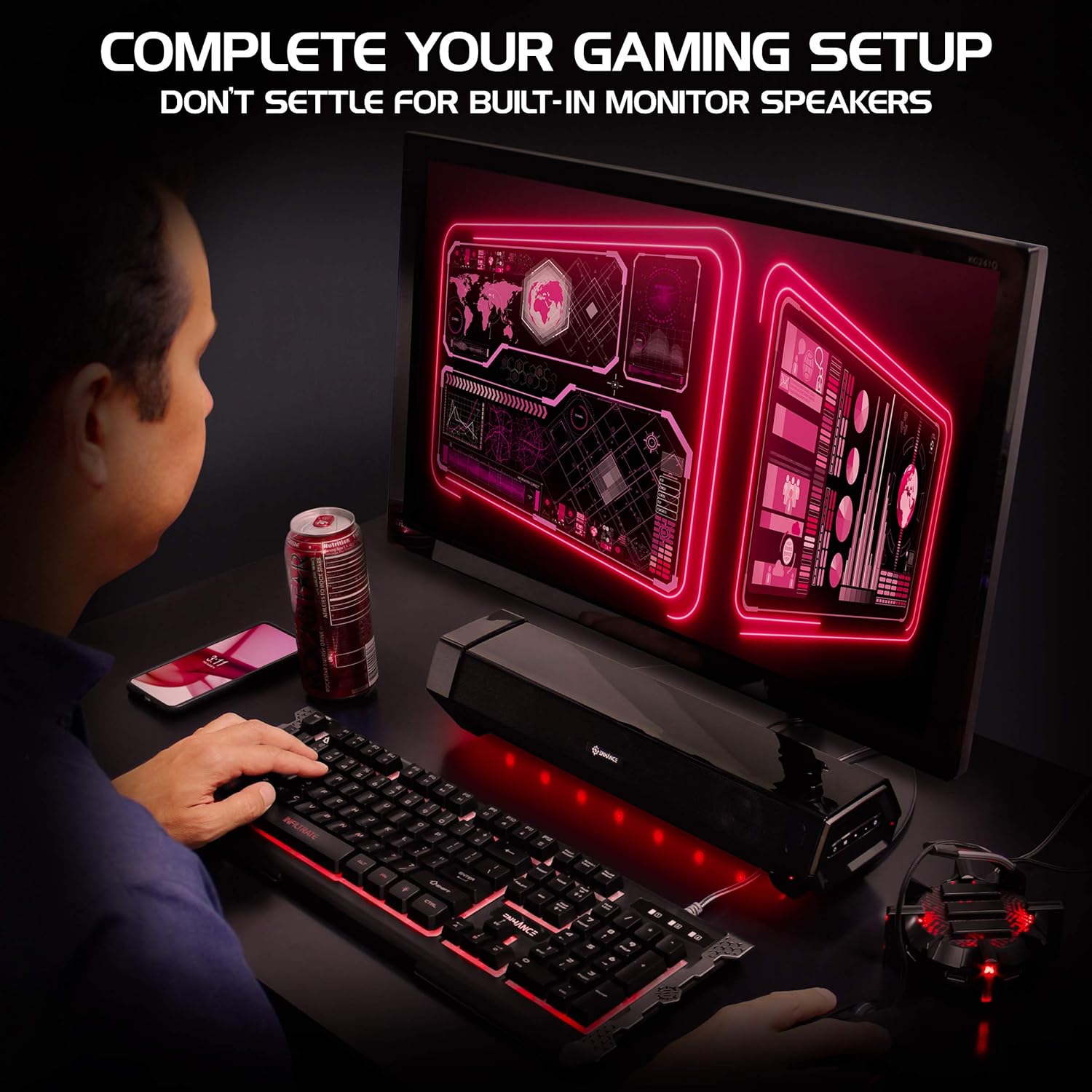 ROOM-FILLING AUDIO FOR GAMING DESKTOPS – 2.0 channel soundbar design houses dual 50mm drivers built for enhanced dialogue clarity and immersive volume, perfect for your gaming , music and movies