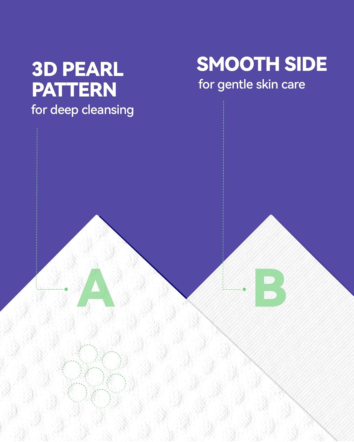 【Dry & Wet Dual Uses】Jolly Care face towelettes disposable are designed with a two-sided texture, one side is pearl pattern texture surface to increase friction for deep cleansing, and the other is smooth surface for wiping skin gently, with super absorbent to help dry your face after washing face and quickly remove makeup