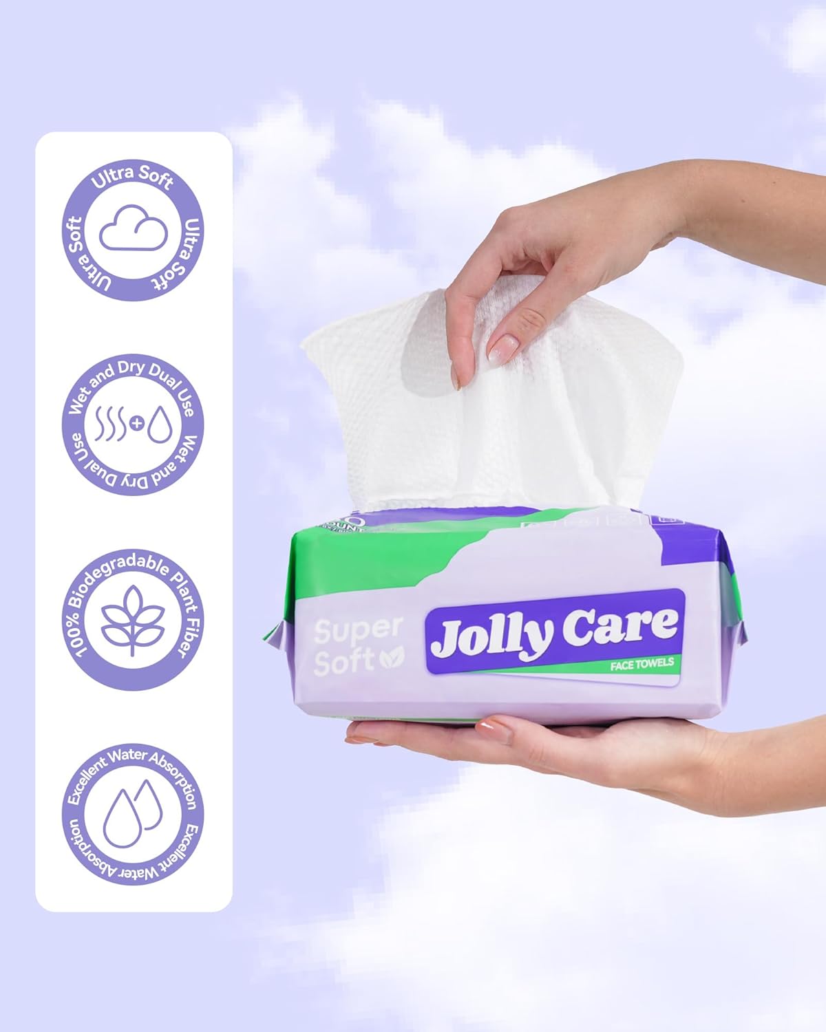 Jolly Care face towels are soft and gentle, suitable for all skin types. It’s a good partner for your daily cleaning.