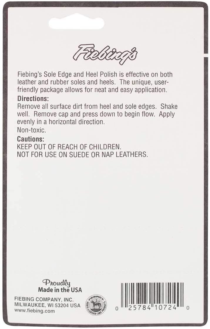 RESTORES SOLES: Fiebing’s Sole Edge and Heel Polish effortlessly restores scuffed heels and sole edges on leather and rubber footwear.