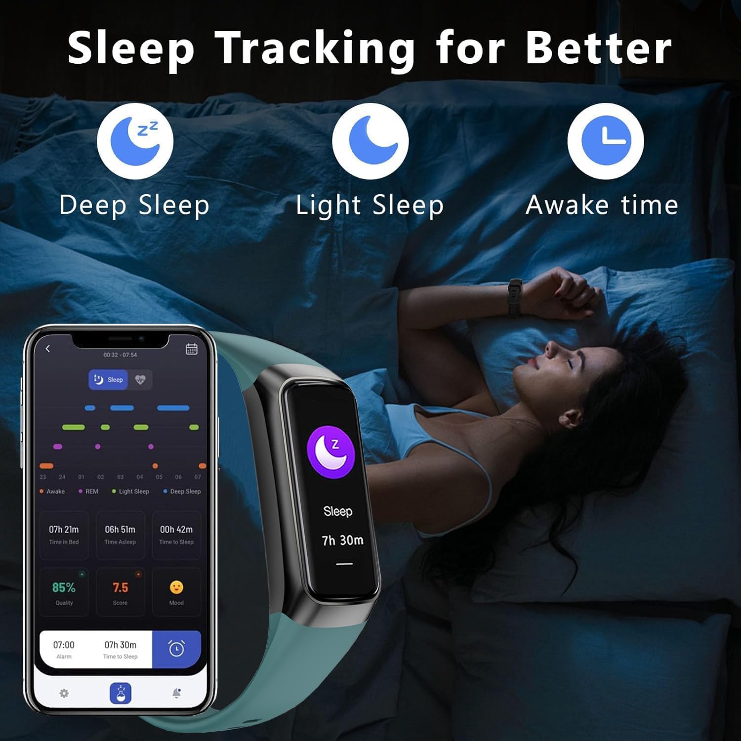 The sleep tracker also analyzes your sleep quality, tracks your deep sleep, light sleep, and awake periods, rates your sleep quality, and helps you adjust your sleep habits. Let you have a relaxing and healthy day.