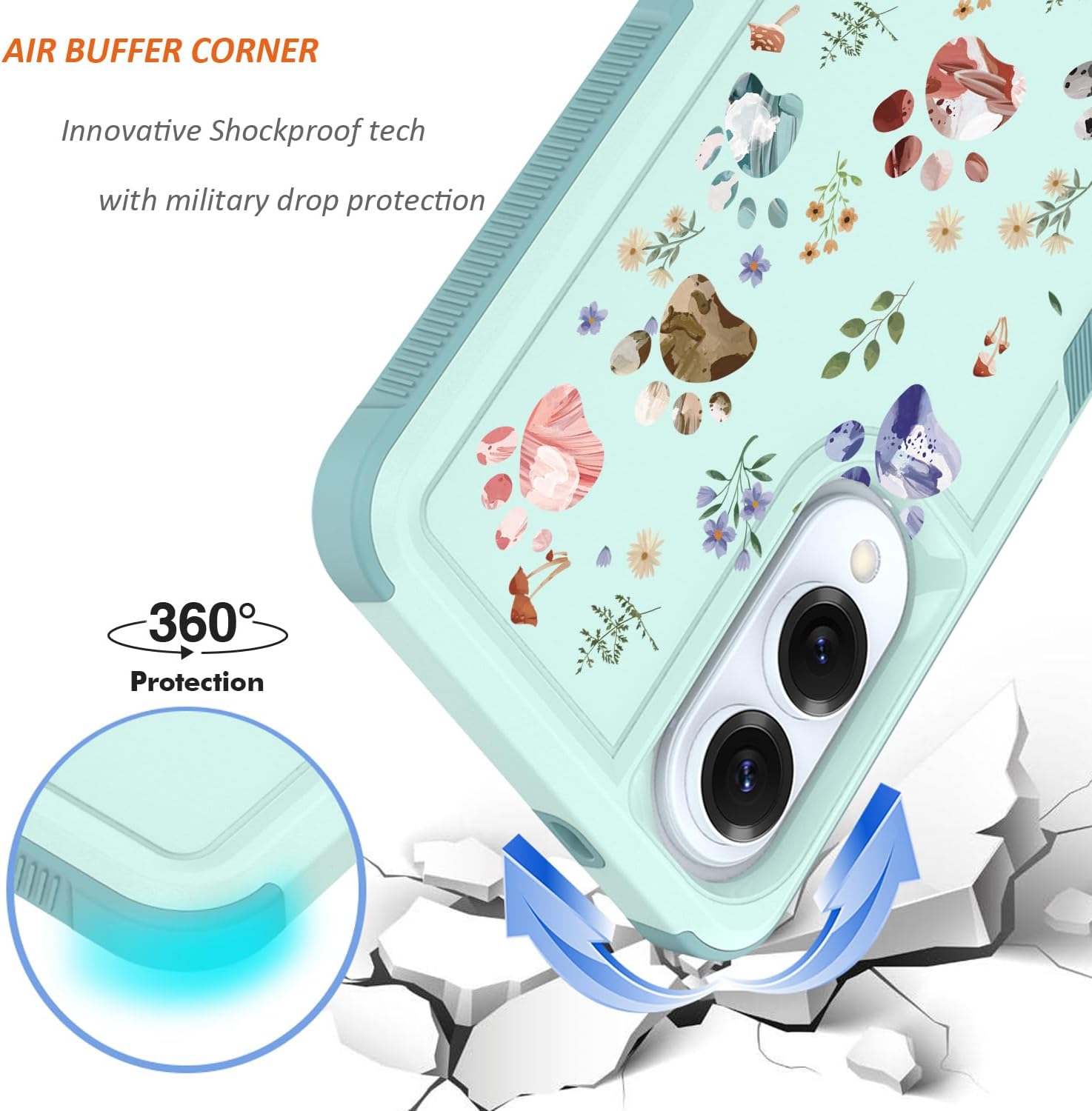 [Floral Pattern Not Fading]: This cellphone case with unique color hollowed waterproof painting tech,Flowers cartoon character print design, shock absorption,resistant scratch,Color not peel off.