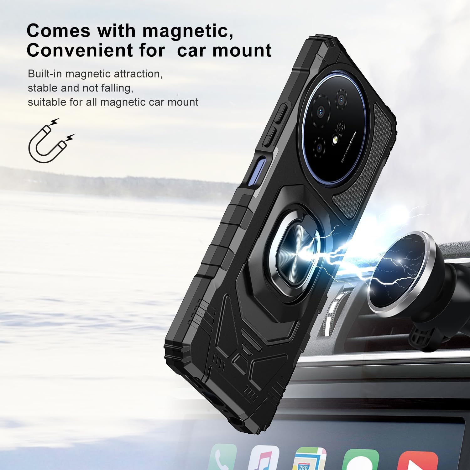 Built in Metal Kickstand:It provides multiple adjustable angles to watch videos, freeing your hands. You can also pass your finger through the ring to prevent it from falling off. the built-in metal sheet can be directly stably attached to the magnetic car phone mount.