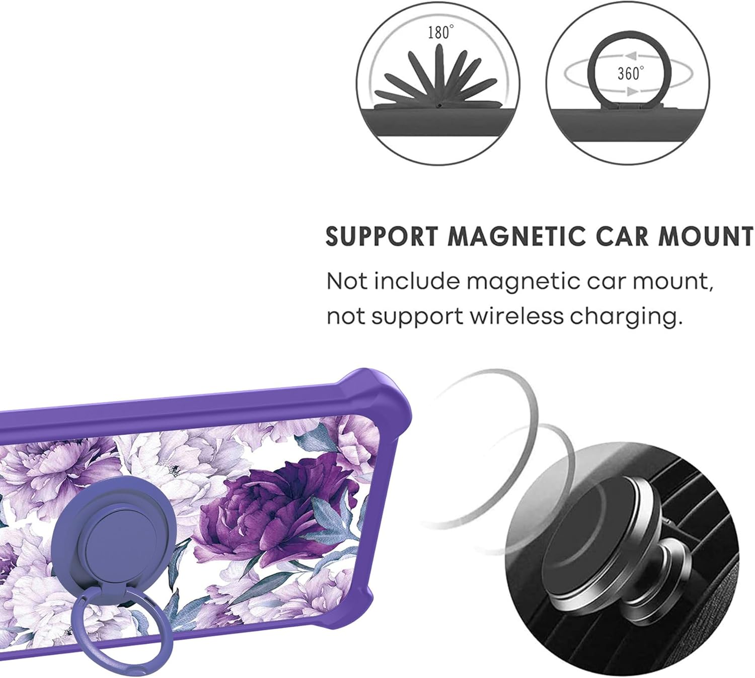 Adhesive metal finger ring support [you can choose to stick to Case, or separate use], 360 degree rotation + car bracket magnetic suction