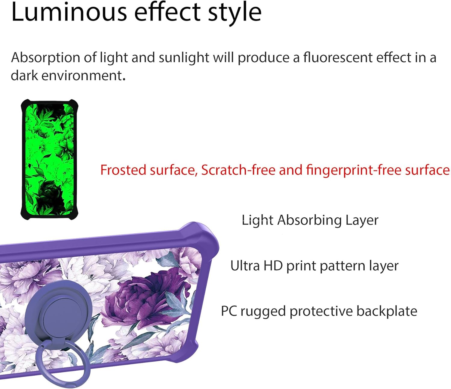 for ZTE AXON 50 Lite Case Compatible with ZTE Blade A73 4G / Blade V50 Smart Phone Case Cover [with Tempered Glass Screen Protector][PC + Silicone][Ring Support] [Luminous Effect] YGZ-ZSH