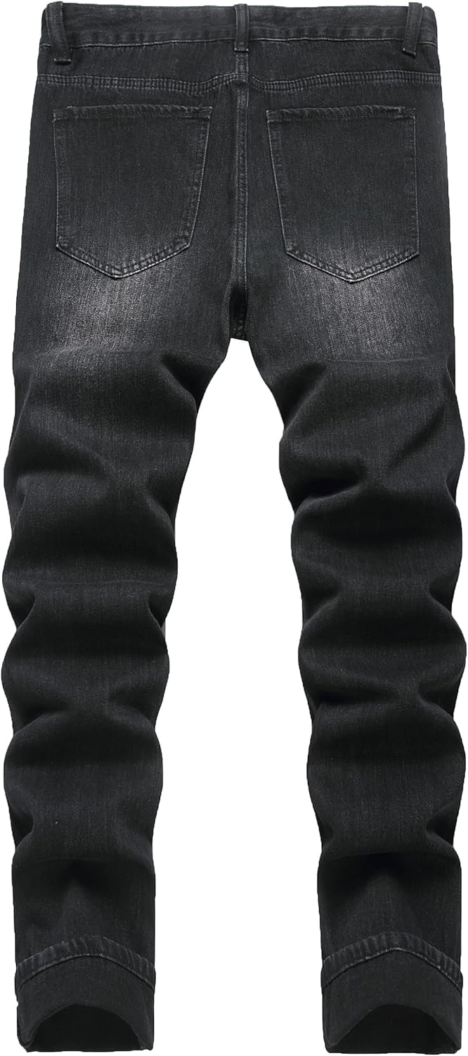 FREDD MARSHALL Ripped Jeans Men,Jeans for Mens,Slim Fit Distressed Straight Leg Fashion Washed Pants