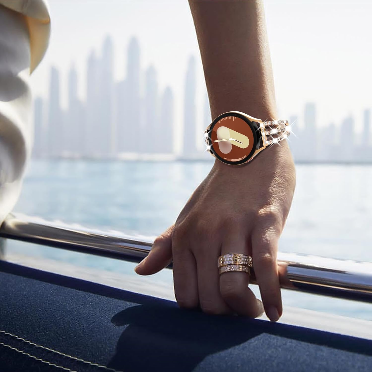 FULLIFE Compatible with Samsung Galaxy Watch 7 6 5 4 FE Band 40mm 44mm for Women, Jewelry Metal Wristband Strap for Galaxy Watch 6 Classic 4 Classic 5 Pro 43mm 47mm 42mm 46mm 45mm 20mm, RoseGold