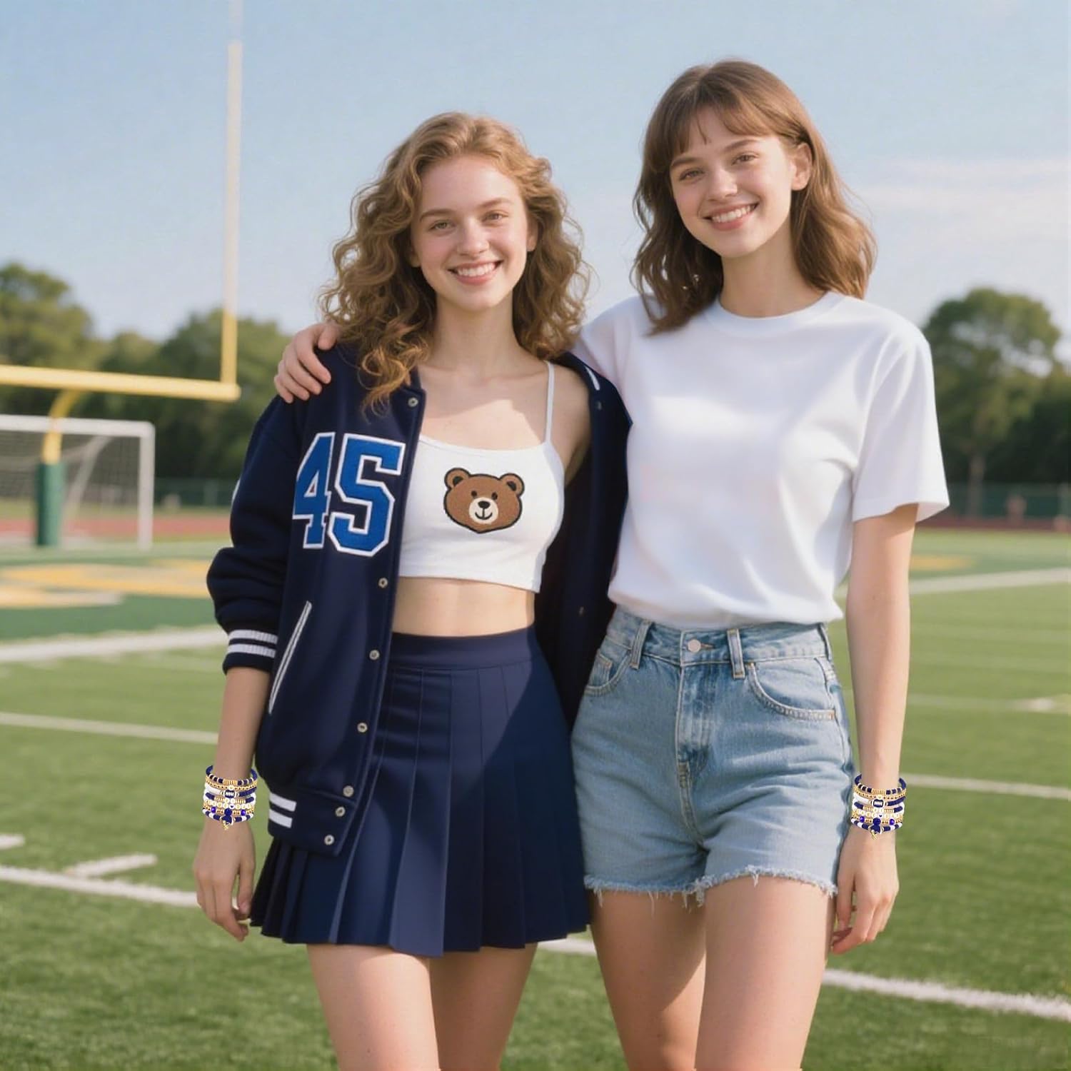 Each bracelet is designed to celebrate the excitement of football: one showcases a 3D football charm, another a mini helmet, and a third spells out “GAME DAY” with colorful letter beads.