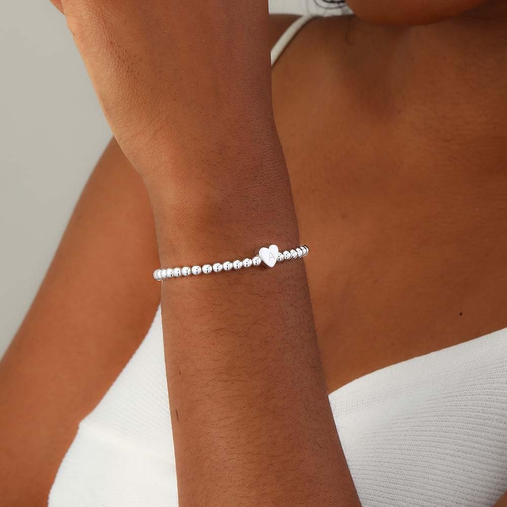 Gold Initial Beaded Bracelets for Women,14K Gold Plated Heart Letter Bracelets Handmade Ball Bead Bracelet Dainty Personalized Name Letter Bracelet for Women Trendy Gold Jewelry Gifts