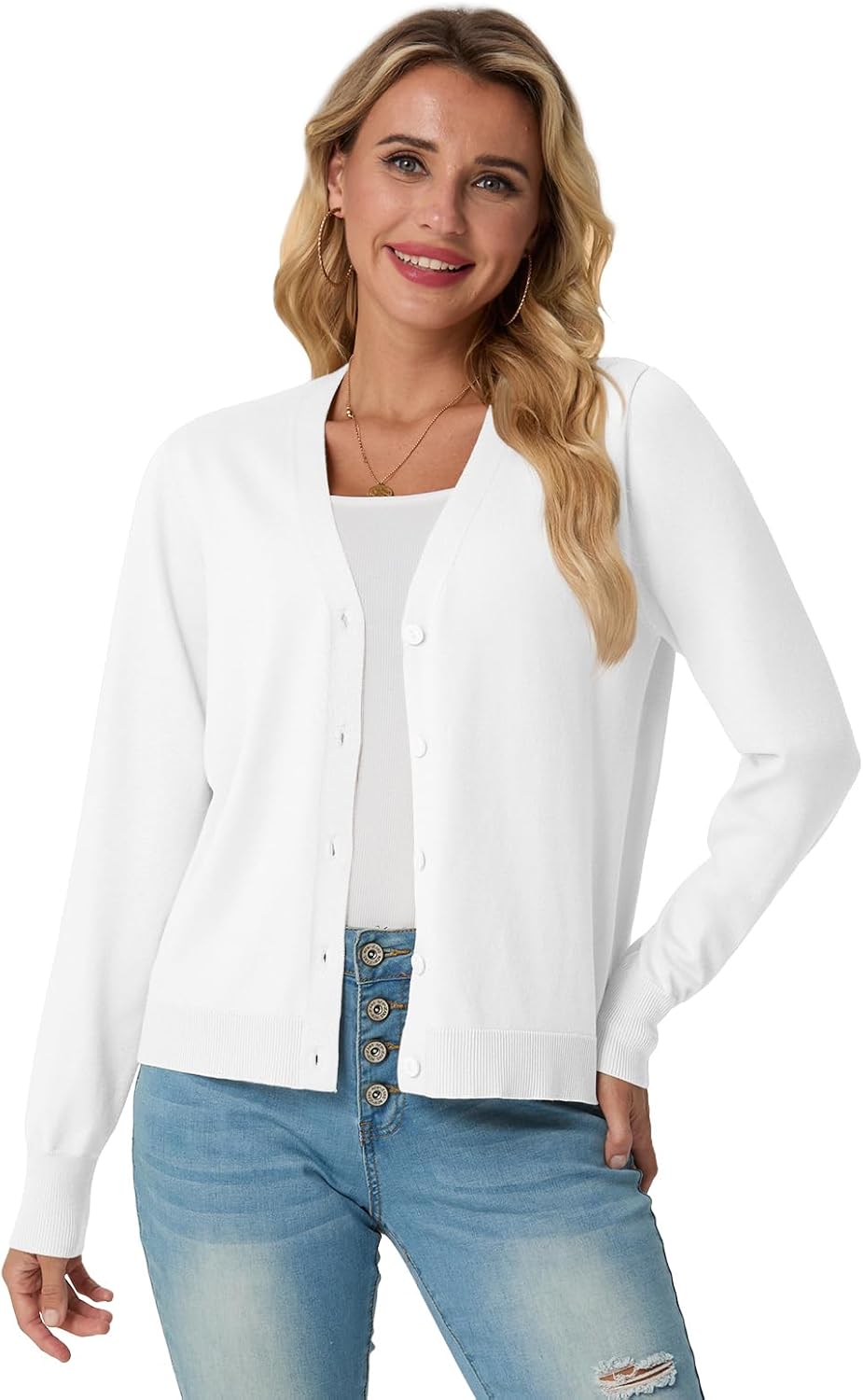 GRECERELLE 2025 Womens Lightweight Open Front Long Sleeve Casual Button Down V-Neck Cardigan Sweater (S-2XL)