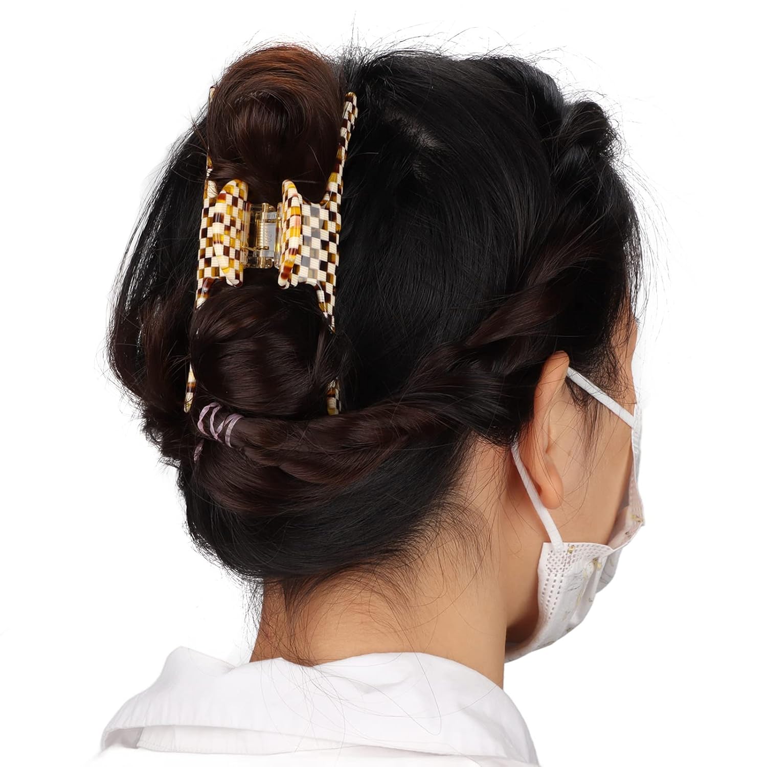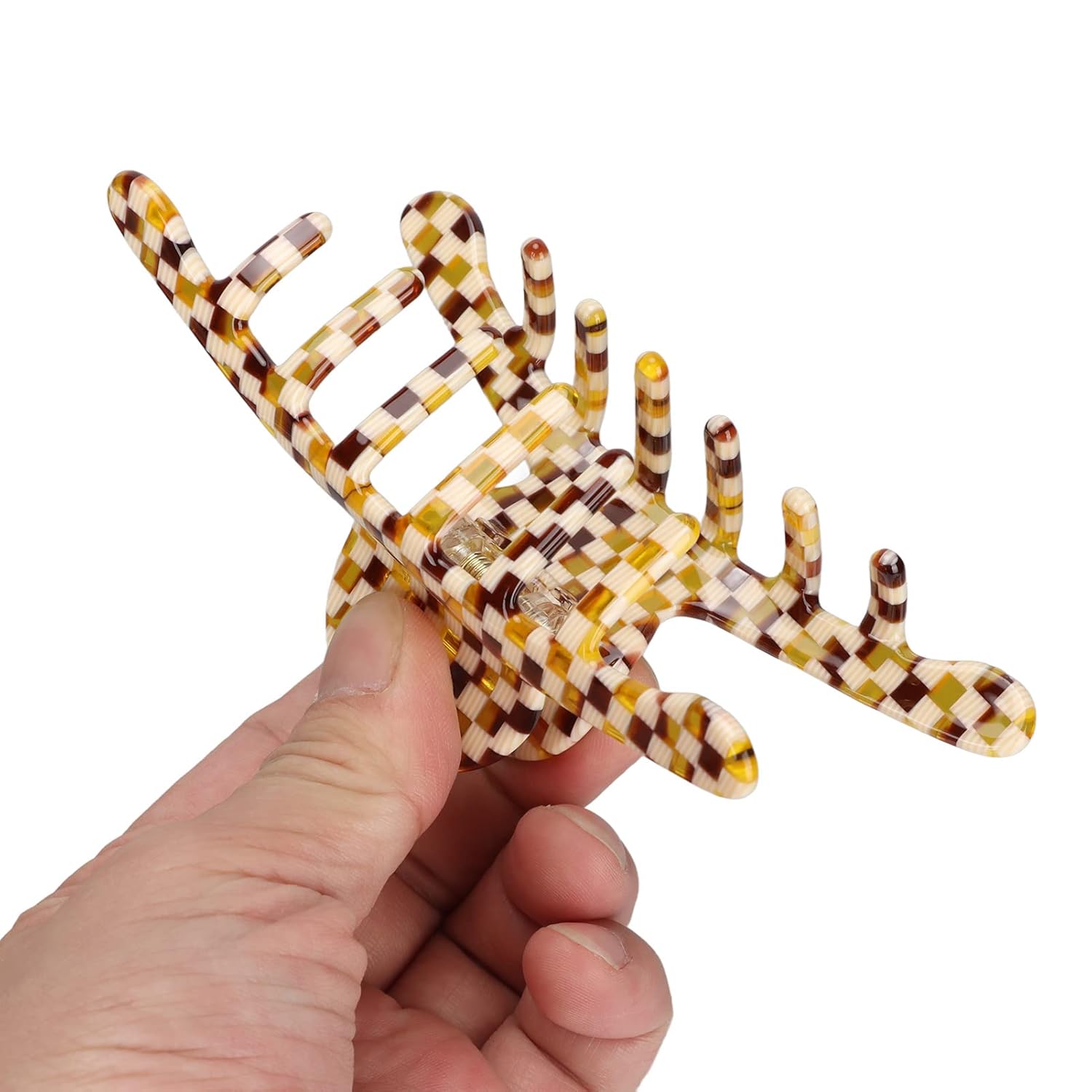 Hair Claw Clip for Women Fashion Elegant Hollow Hair Clip Medium Claw Clip Hair Barrettes Hair Accessories(Checkered Brown)