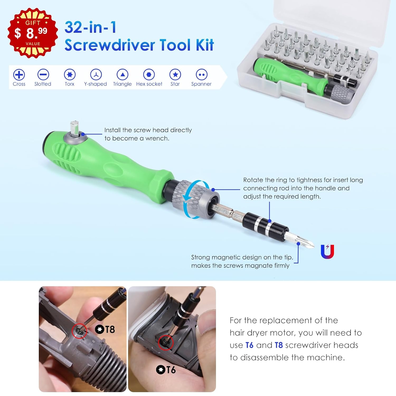 Easy Installation: We provide a comprehensive motor adapter installation video guide, which can help you easily and seamlessly remove and install the motor in 20 to 30 minutes to restore the hairdryer to its optimal performance