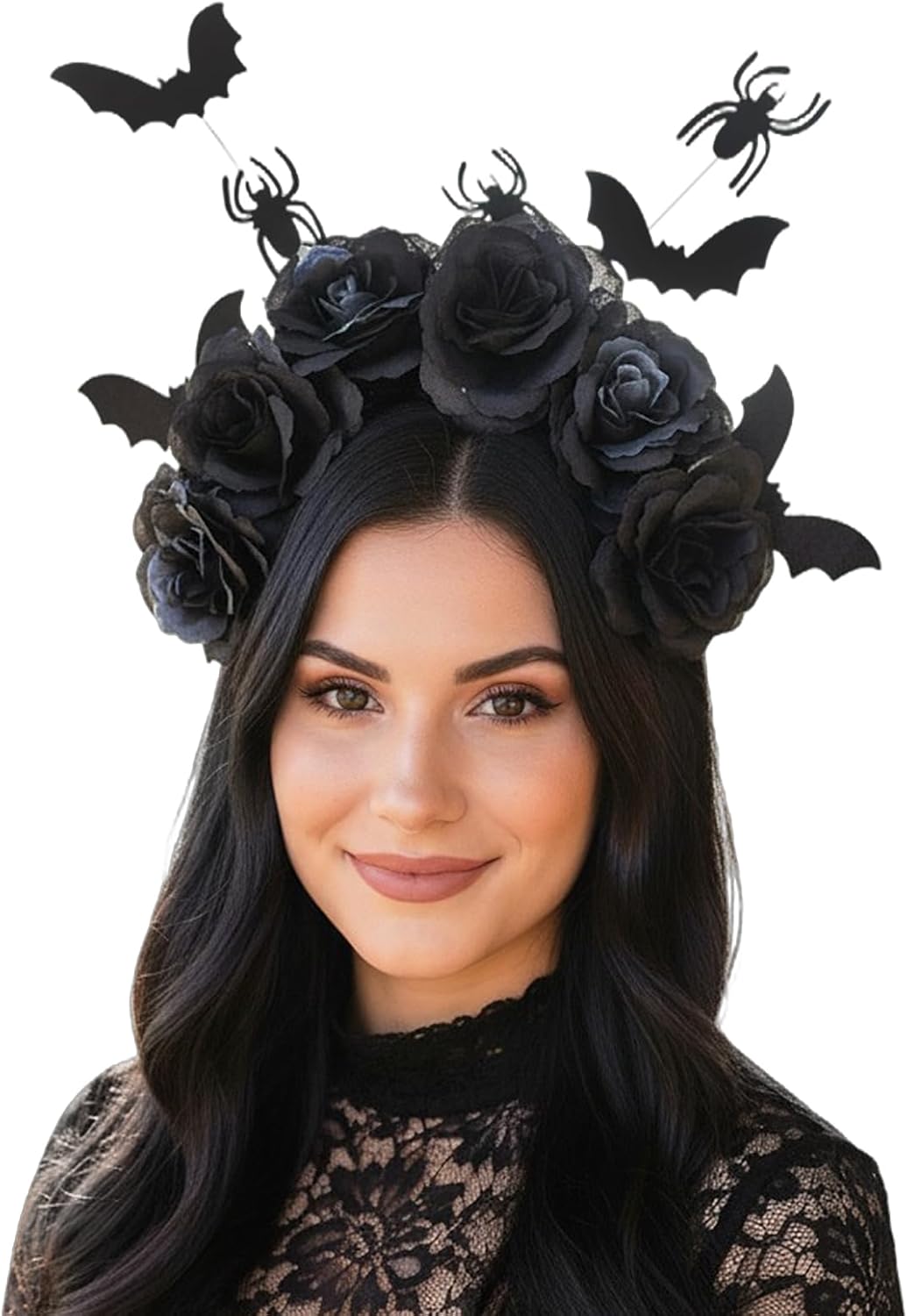Halloween Bat Headband, Black Bat Flower Headband Halloween Hair Accessories for Festive Cosplay Costume