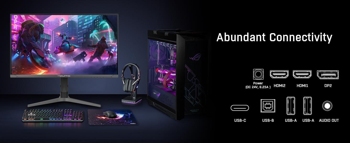 Haurve 32” UHD 4K 144Hz Gaming Monitor with Height Adjustable Stand, PD 90W, HDMI 2.1, DP 1.4, USB-C, RGB, Speakers, 0.5ms, 3840X2160 Display, (HG3214K)