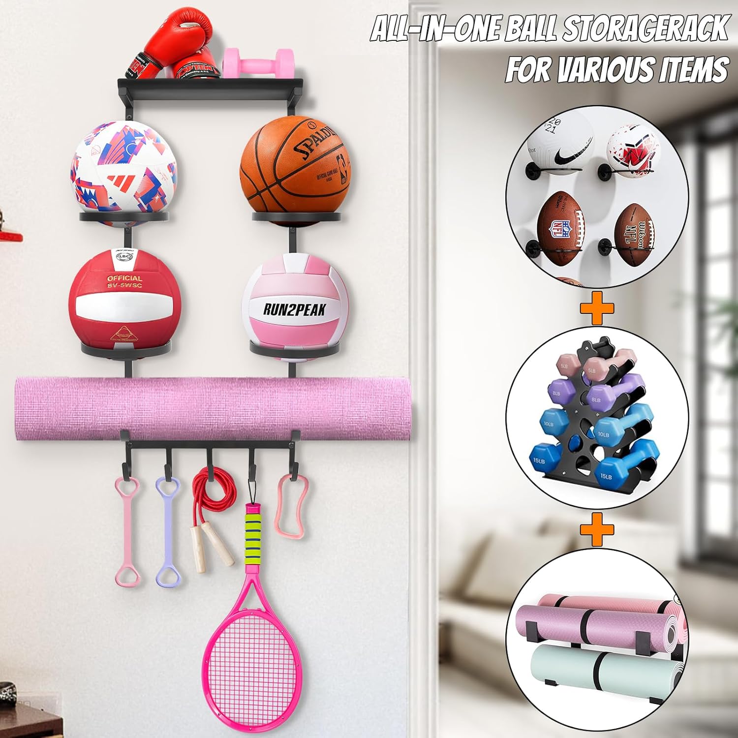 Easy Installation: The ball rack is wall-mounted and screw-mounted to the wall (high quality screws included) with assembly instructions, easy and convenient to install, the ball wall mount can be wall-fixed in 10 minutes, making the storage simple and efficient.