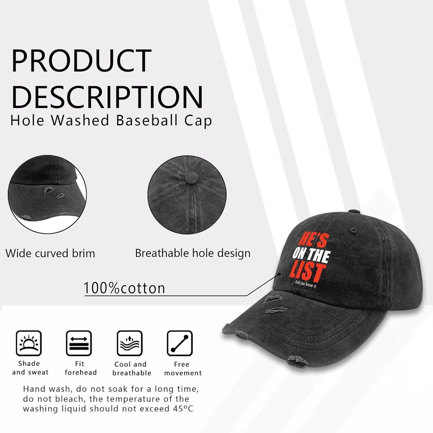 Funny hats He’s On The List And You Know It hat baseball cap cute dad hat baseball caps for women washed adjustable strapback hat funny gifts for men
