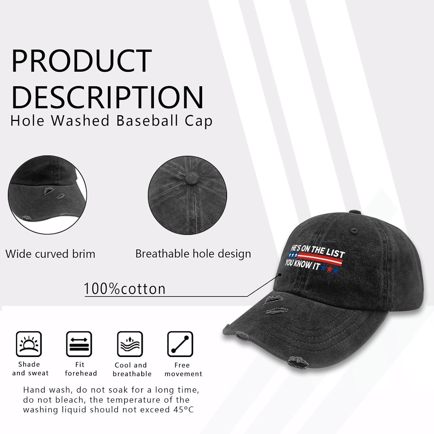 Funny hats He’s On The List And You Know It hat baseball cap cool dad hat baseball cap for women washed cotton adjustable strapback cap hat funny gifts for women
