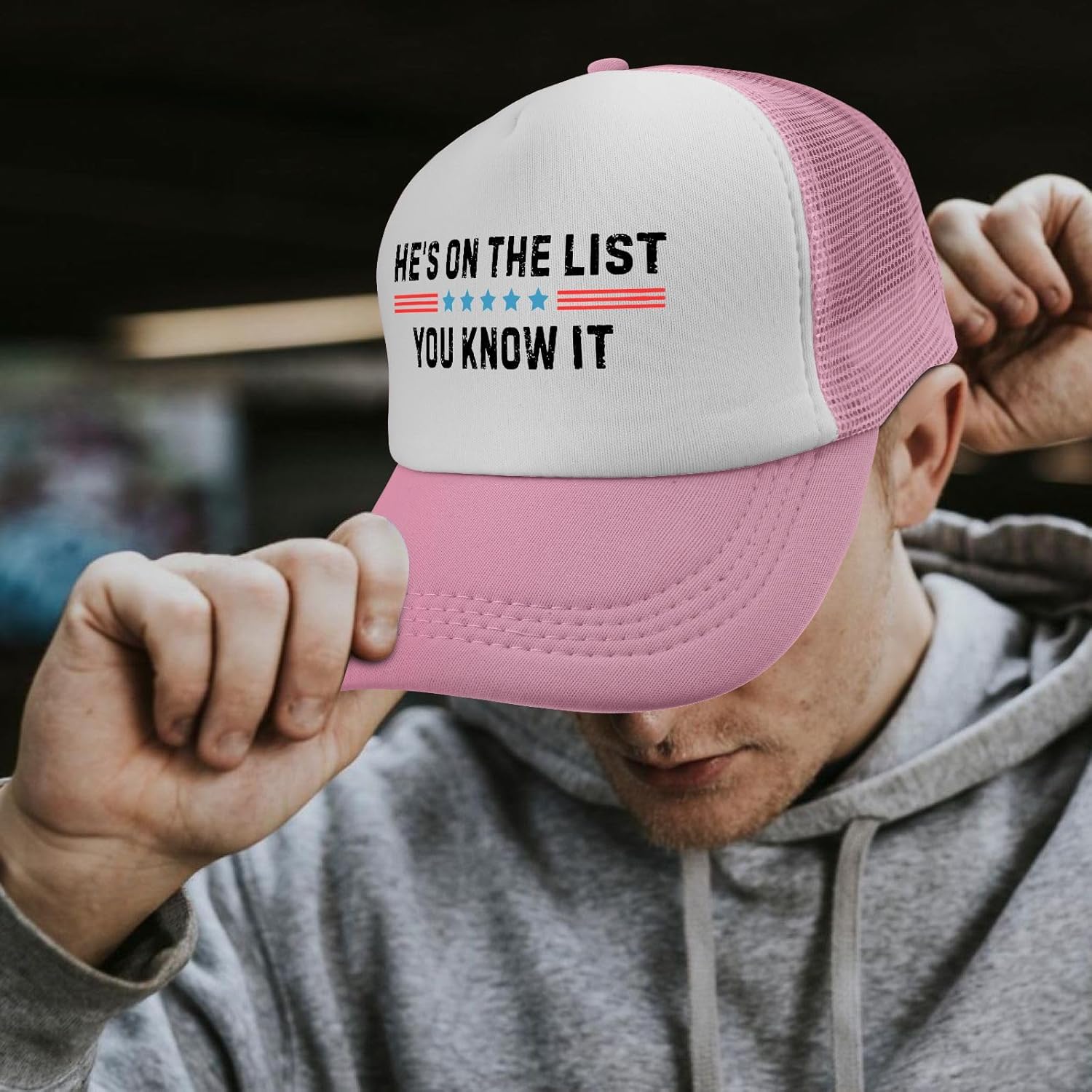 He’s On The List And You Know It Hat Trucker Hat Men Trendy Mesh Cap for Men and Women Breathable Hat for Summer, Vintage Trucker Hat Washed Baseball Caps Unisex Snapback Adjustable Hat