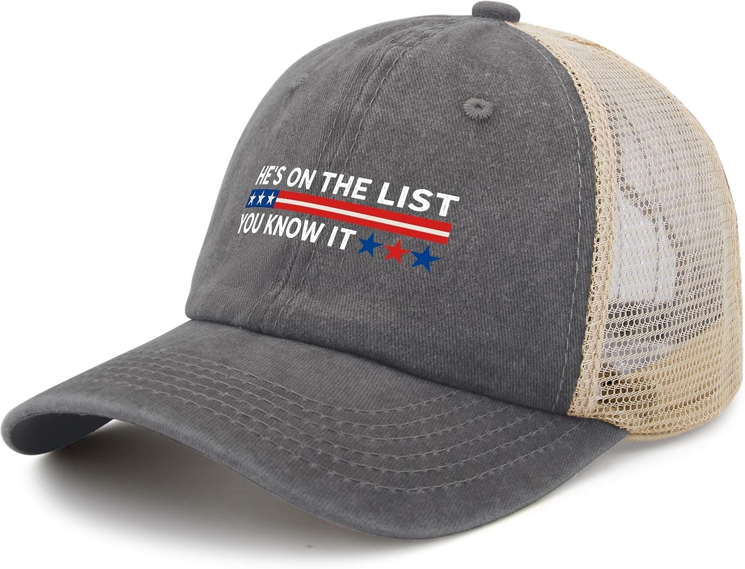 He’s On The List And You Know It Hat Trucker Hat Men Vintage Mesh Baseball Cap for Men and Women Breathable Cap for Summer, Funny Trucker Hat Washed Baseball Cap Unisex Snapback Adjustable Hat