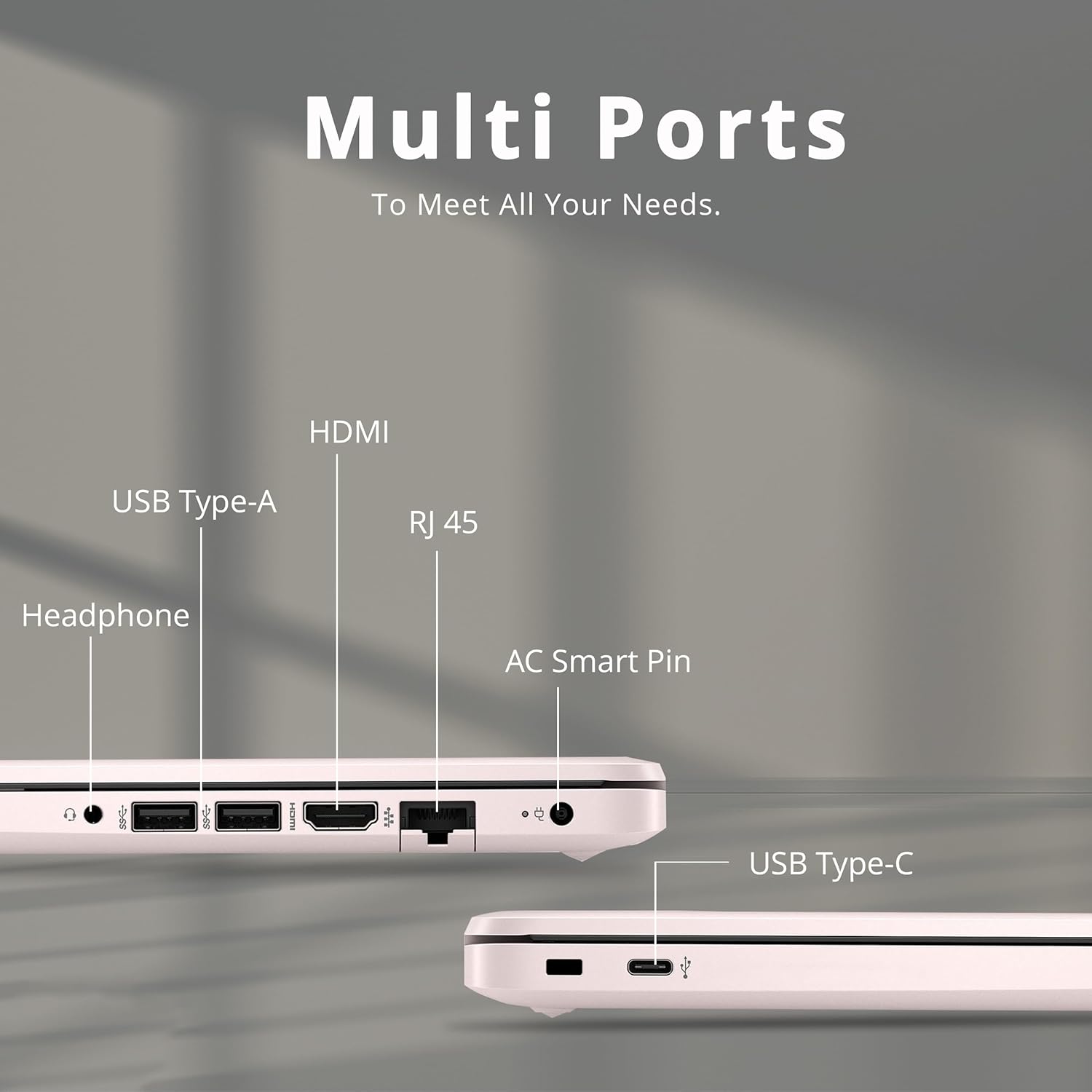 【Windows 11 included】12.76″x 8.86″x 0.71″, 3.24 lbs. Ports: 2 X USB 3.0 Type A Ports, 1 x USB 3.0 Type C Ports, 1x Headset, 1x Media Card Reader. HDMI. 1 year Office 365, Wireless-AC + Bluetooth, Pink. Bonus 32GB SnowBell USB Card.