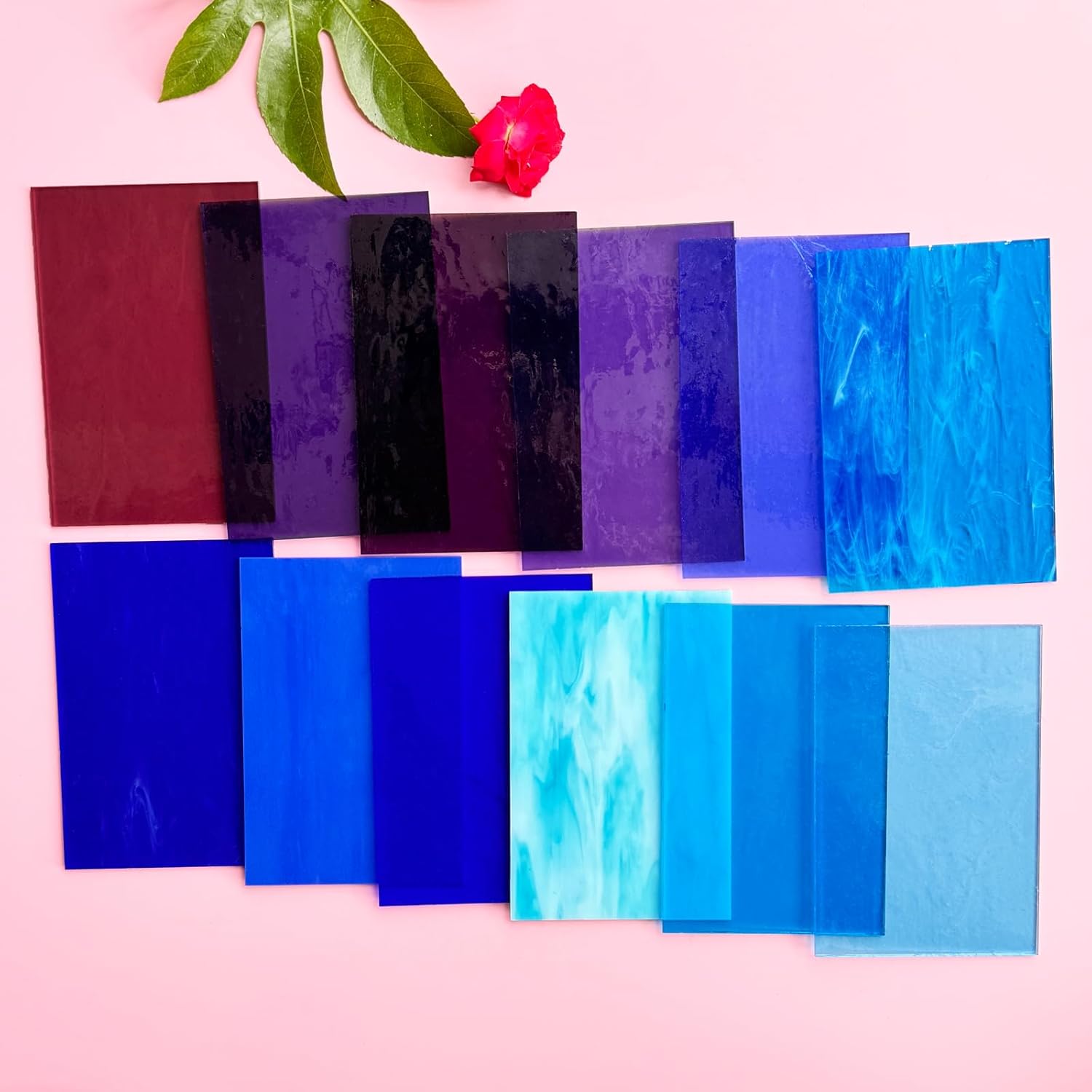 These 90 coe glass sheets are perfect for fused glass crafts, beads & jewelry making, home decor, sun catcher, lampshades, windows, stained glass projects, murals, and mosaic crafts