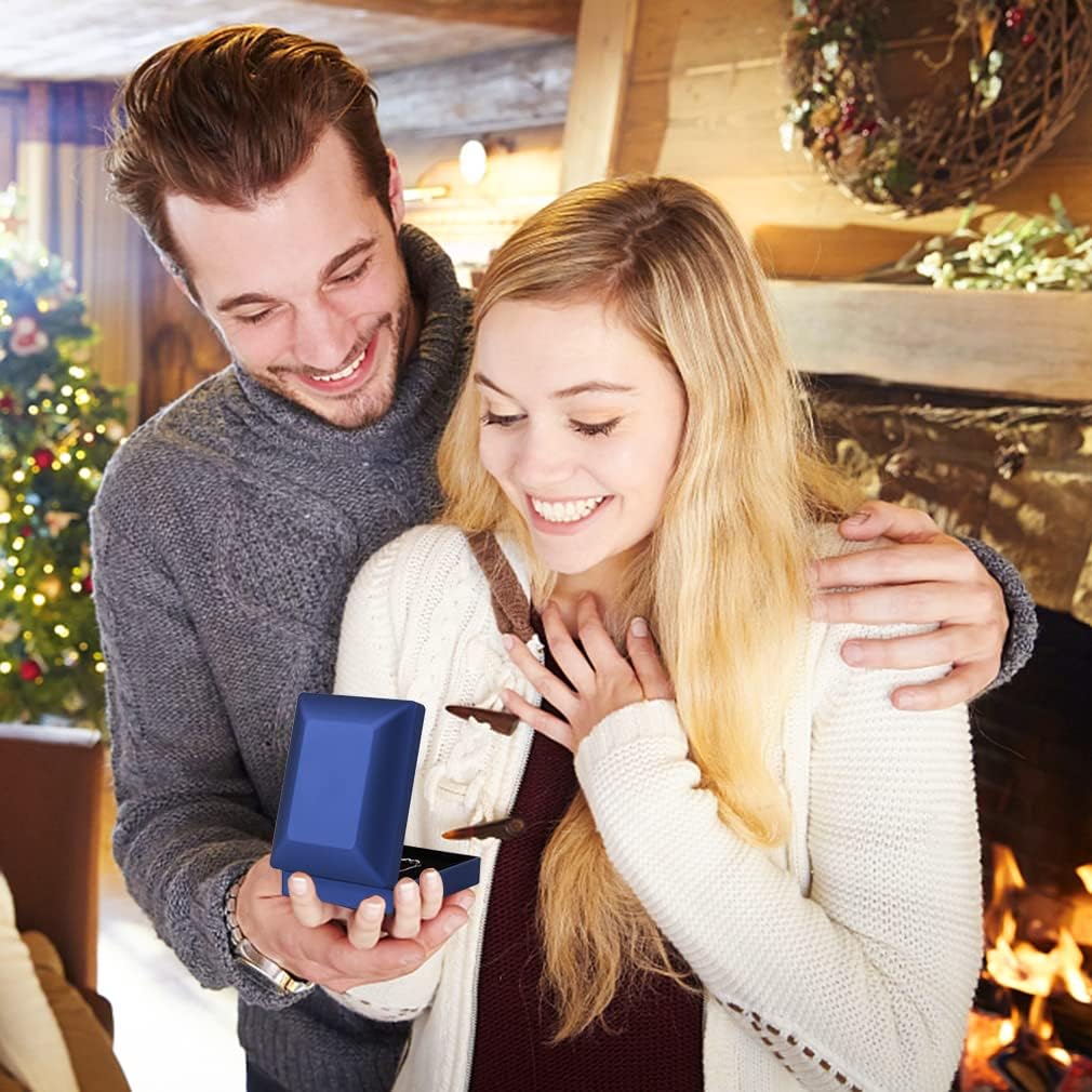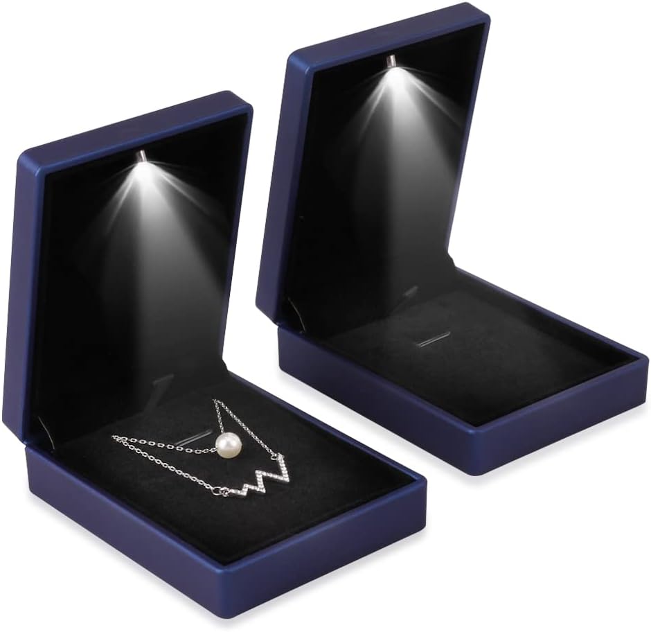 iSuperb LED Light Pendant Box Blue Necklace Display Case Jewelry Gift Box for Friend Girlfriend Mom Grandmother Wife Women