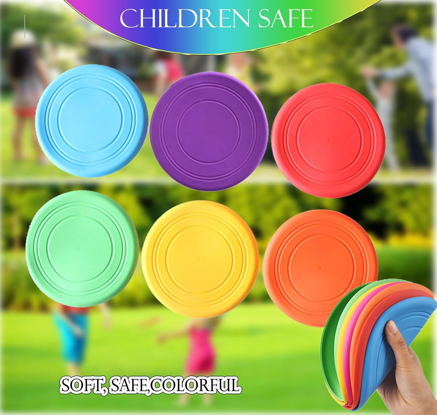 Kids Flying Disc Toy Outdoor Playing Lawn Game Disk Flyer for Kindergarten Teaching Soft Silicone Colorful 6 Pack Bulk Set…