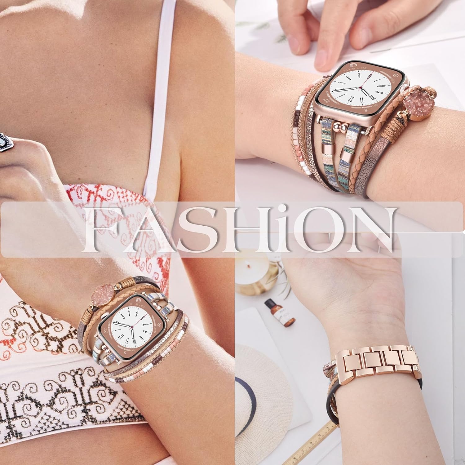 Boho leather wrap design for apple watch bands for women, perfect for matching with jewelry or clothing, makes it easy to receive compliments.