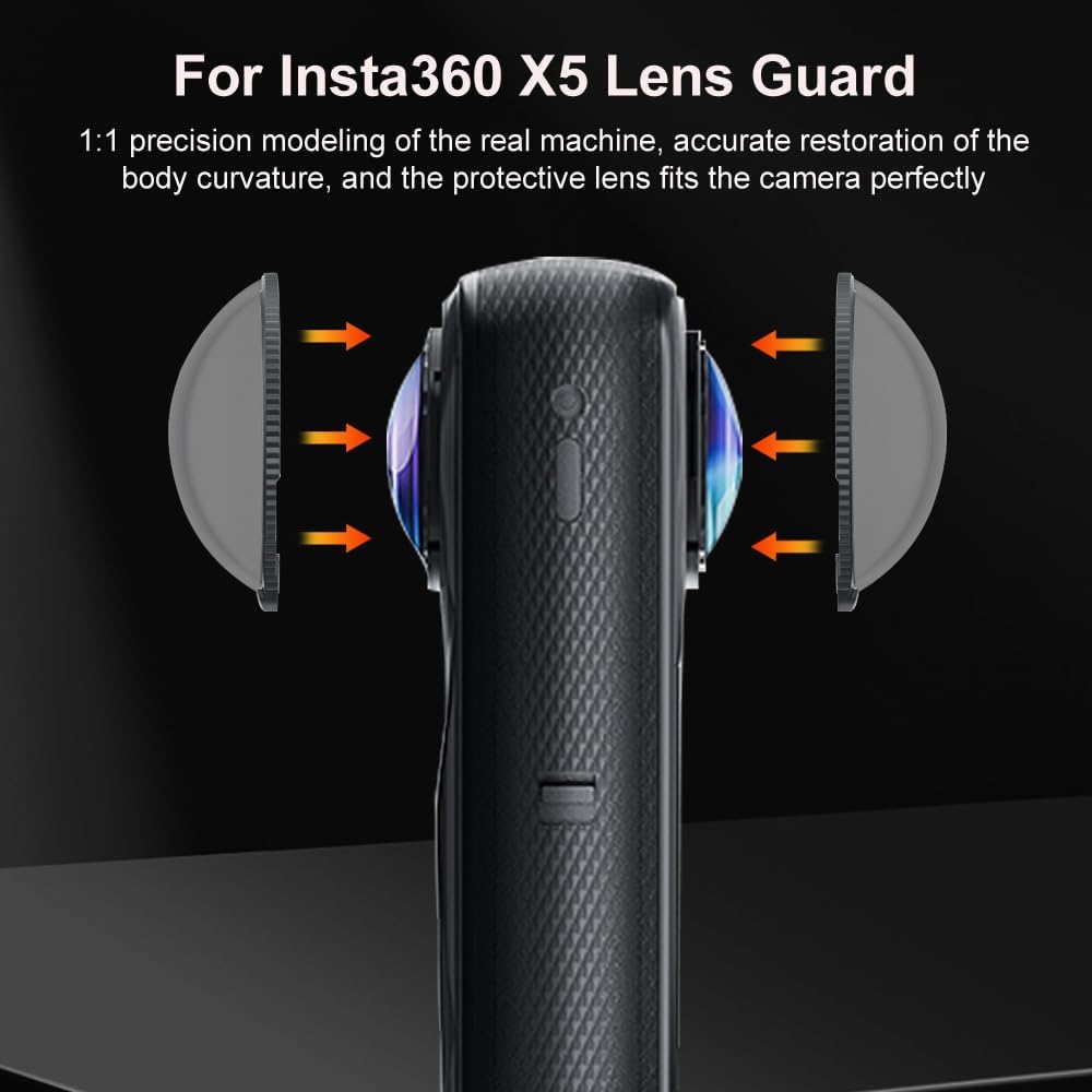 Lens cover for insta360 x5 provide a precise closely fit, accurate modeling of the real machine, accurately restore the curvature of the fuselage. Offering full coverage and protection for all lenses, the x5 camera retains a original wide field of view, without obstructing the camera’s field of view