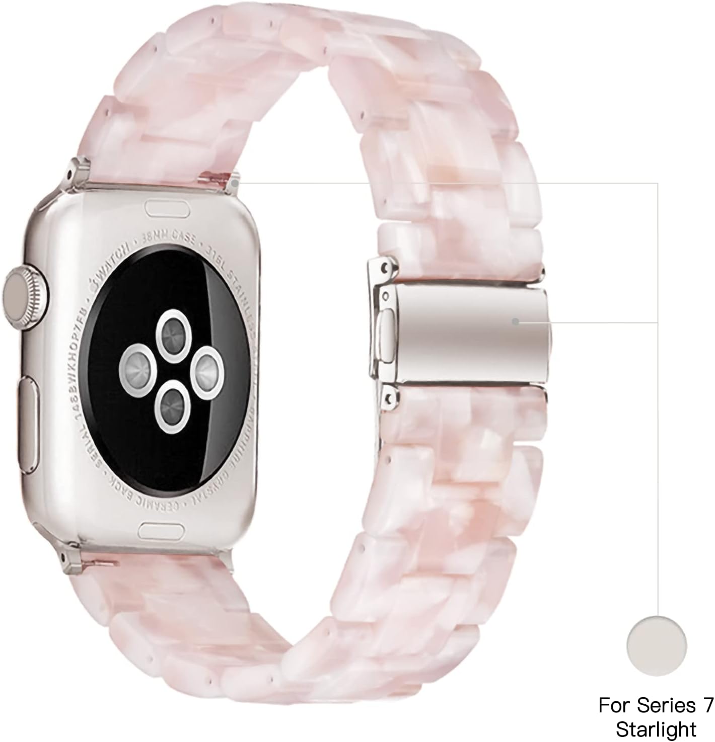 Elegant The texture of each hand-made watchband is so unique. It can perfectly match all your clothes, and suitable for you to attend any occasion.Comfortable Extreme Lightness makes it very comfortable to wear. Each piece of resin is slowly polished by the experienced artificers.Sparkling Gift Combined with premium colorful resin, it offers a new bracelet look to Apple Watch. It is a great gift choice for Weddings, Birthdays, Valentine’s Day, Mother’s Day, Halloween, Christmas, Thanksgiving day, etc.