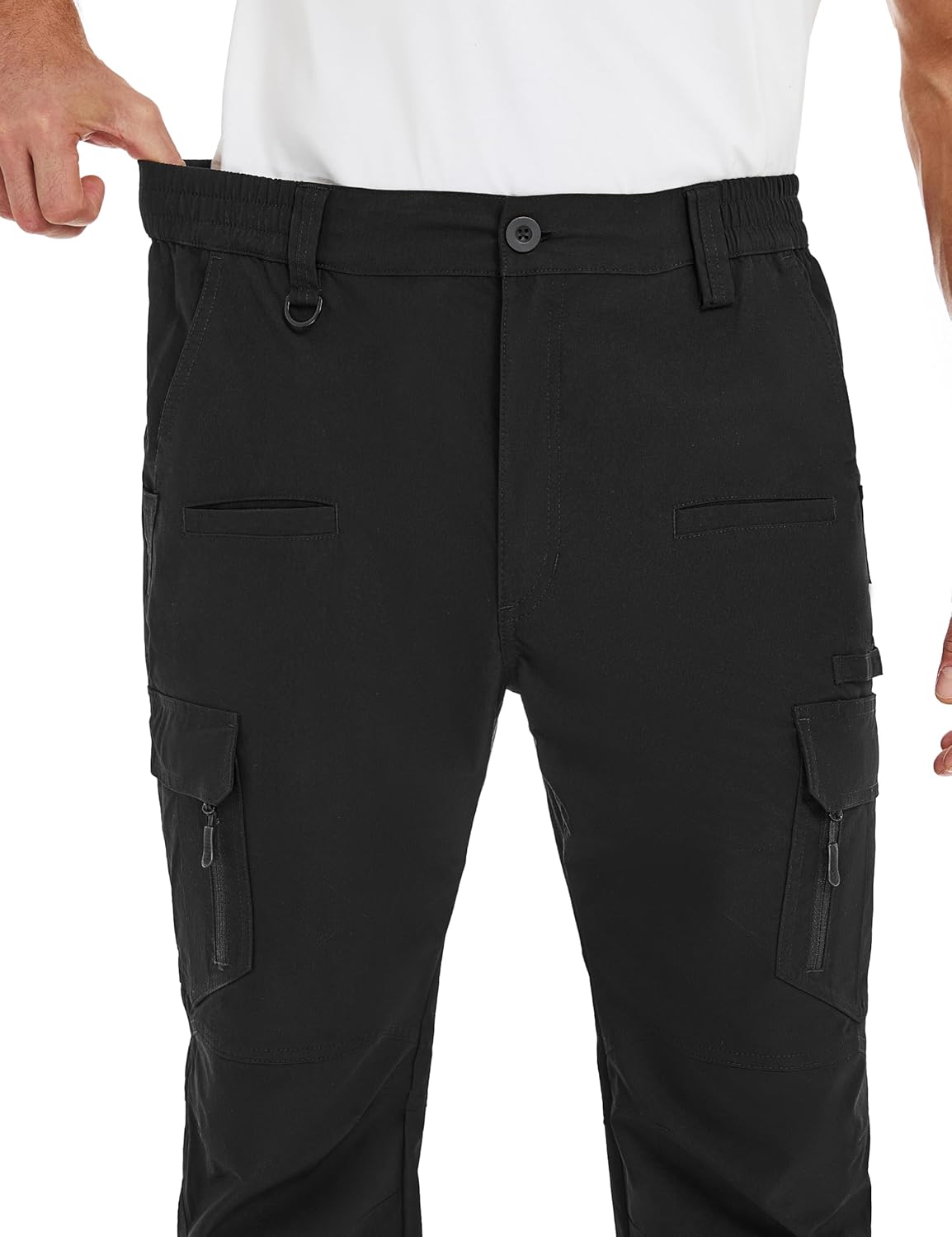 Lzzidou Men’s Ripstop Tactical Pants, Water Resistant Lightweight Cargo Pants, Outdoor Work Hiking Pants with Zipper Pockets