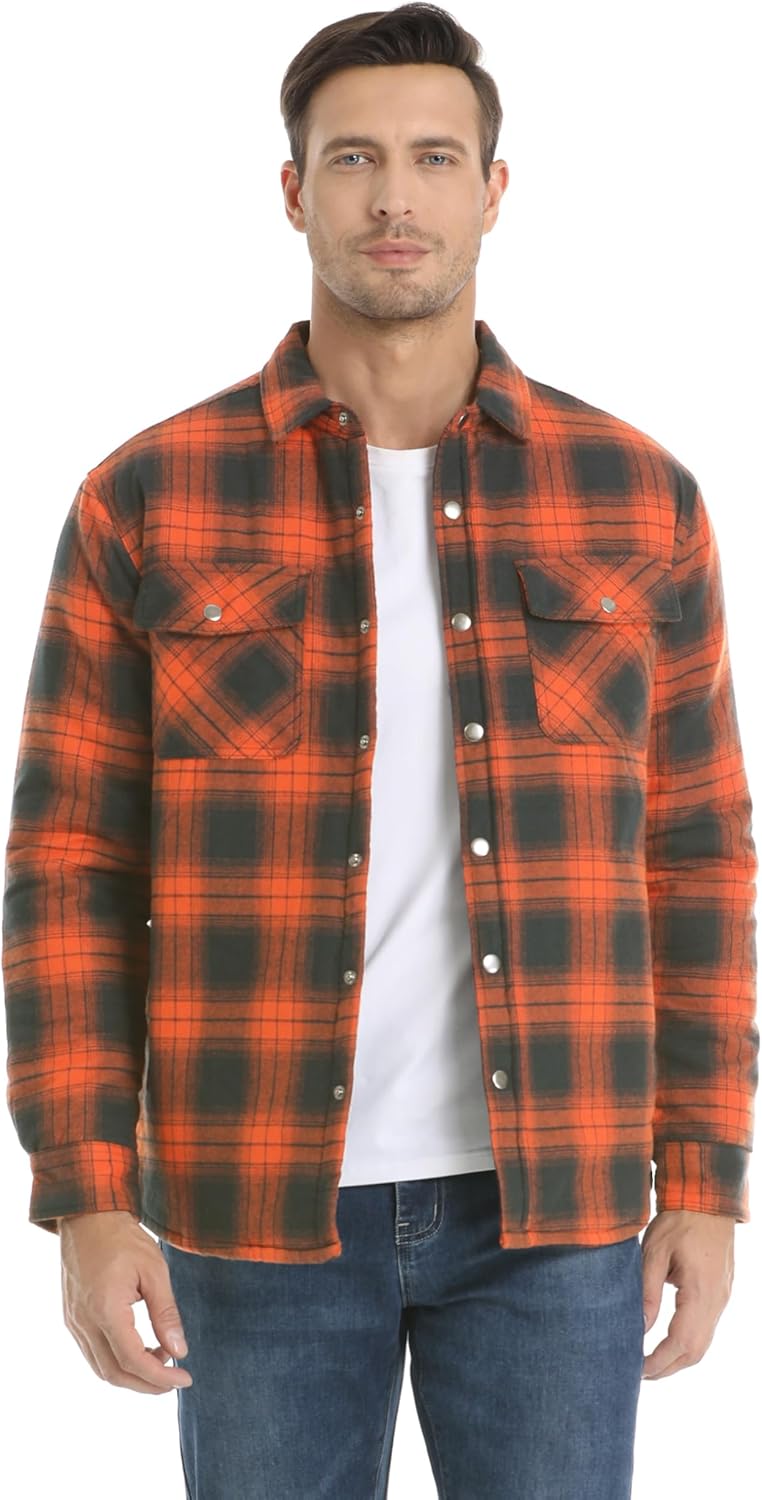 MAGNIVIT Men’s Warm Flannel Plaid Quilted Lined Button Down Shirt Jacket