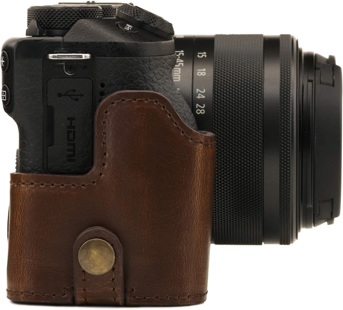 Description Explore All Camera Cases Specifically Tailored for: Canon EOS M6 Mark II Camera Cases & Accessories Keep your Canon EOS M6 Mark II (15-45mm) safe with the MegaGear “Ever Ready” Protective Leather Camera Case with Battery Access. This case is made for photographers who wish to reflect their art through their style. A union of exquisite leather craftsmanship and soft, padded internal protection the MegaGear Leather Camera Case will be your perfect companion for taking photos on the go, whenever and wherever you are. Accessibility Matters With the MegaGear Leather Camera Case, you do not have to remove it to take pictures, mount your camera on a tripod or access the peripheral ports, card slots, buttons, and the battery. Simply pull your camera out and capture the perfect shot! Product Details: High-Quality PU Leather Soft Internal Protective Padded Fabric Protects Against Scratches, Dust, Damage, and Shock Easy to Clean and Maintain Ever Ready Design, Tripod Installation and Battery Access in Seconds Designed for Canon EOS M6 Mark II (15-45mm) Product Features: BESPOKE FIT – The MegaGear Leather Camera Case with Battery Access is specifically tailored using high-quality leather for the Canon EOS M6 Mark II (15-45mm) models for precision fit and coverage. ENHANCED PROTECTION – Due to its rugged construction and tailored fit this case provides maximal external protection for your camera against bumps, dust, damage, and shock. The soft internal layer of padded fabric keeps your LCD and lens safe from scratches, along with protecting your camera body. FUNCTIONAL ACCESSIBILITY – The “Ever Ready” is designed for efficient photography and accuracy. You can access all peripheral ports, card slots, buttons, and the battery without removing your case, and attach it to a tripod with the case on! CONVENIENT – Convenience features allow rapid use of your camera when needed, taking that impulsive shoot is as easy as flipping the top cover open. Perfect for functional travel and outdoor use. STYLISH DESIGN – Whether you are a beginner or a seasoned, professional photographer, you will want these lightweight leather cases at your side, combining exquisite, ageless leather style with rugged protection. Product UPC: 193029001827 View more