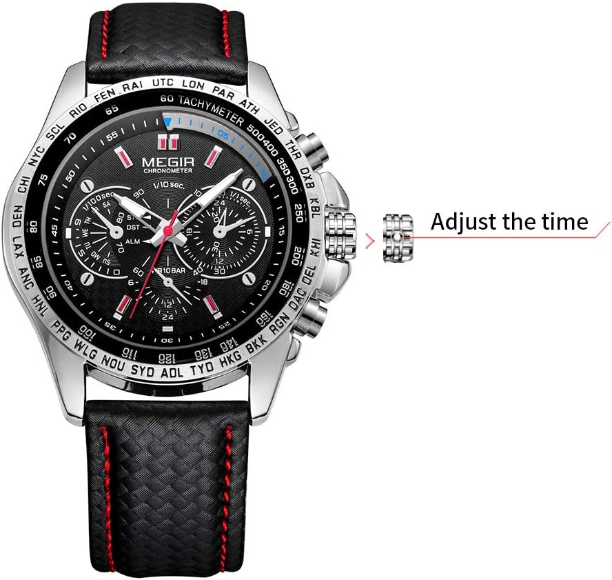 MEGIR Men Analog Luminous Casual Fashion Quartz Watch with PU Strap Big Dial Calendar for Business Work School Outdoor