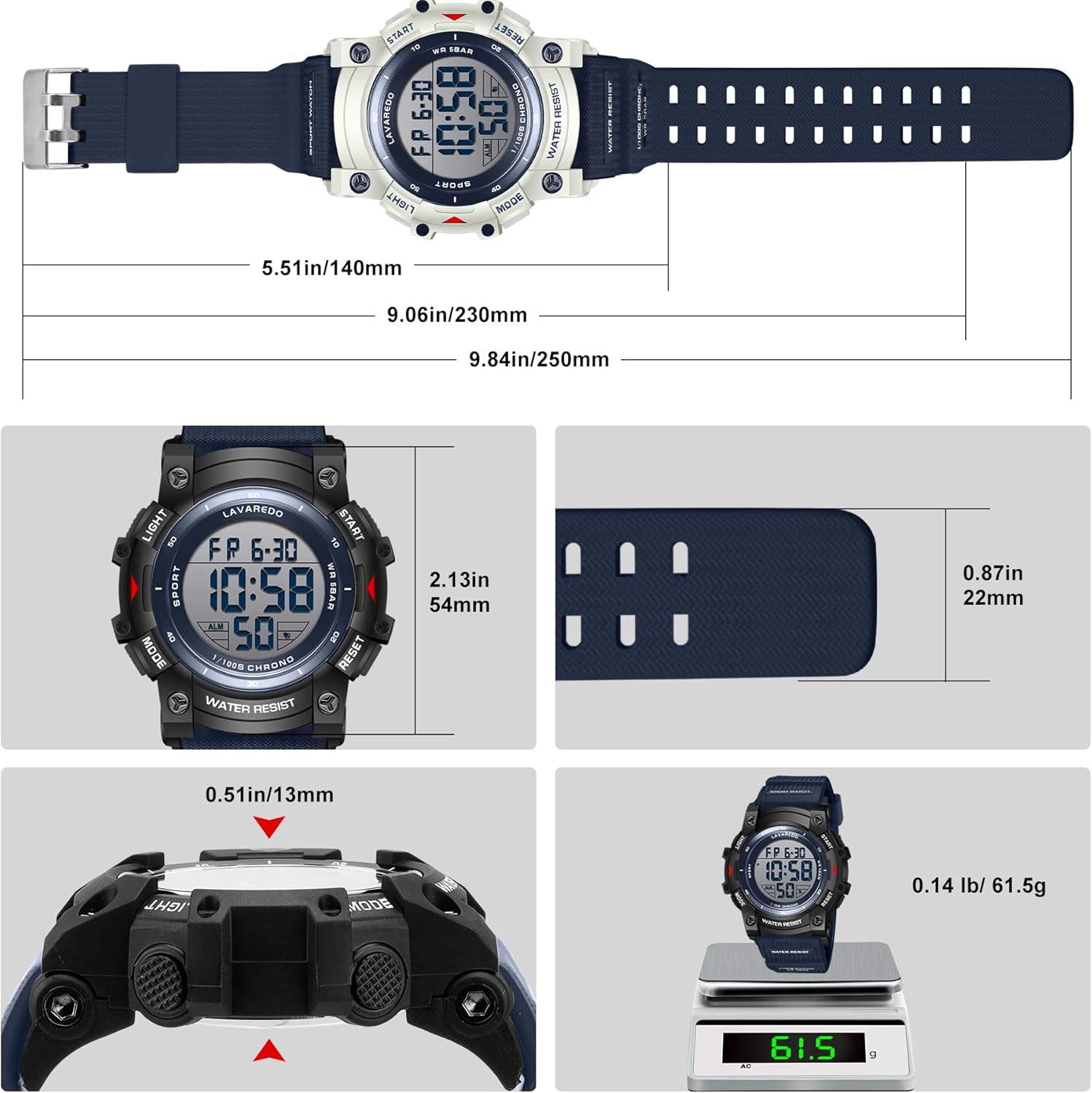 Watches for Men Digital Sport Outdoor Mens Watches 5ATM Waterproof Large Numbers Men’s Watch with Resin Strap Military LED Backlight