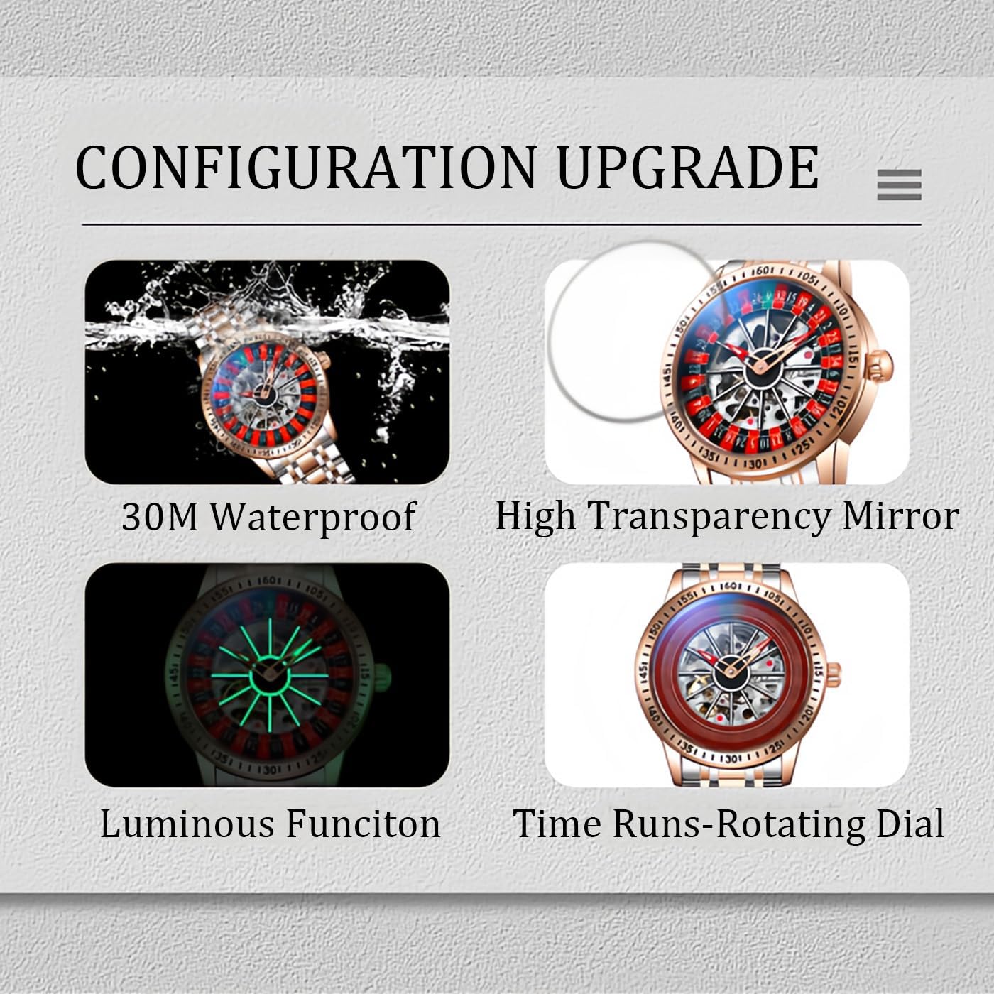 Be the first to review “Mens Gambling Automatic Mechanical Skeleton Hollow Waterproof Luminous Watch Stainless Steel Band Self Winding Roulette Wheel Business Casual Wristwatch”