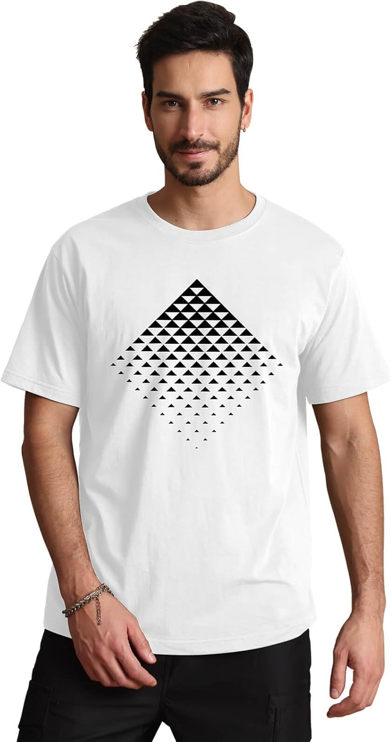 Mens Graphic T-Shirts Triangle Geometric Gradient Art Top Tees for Men
