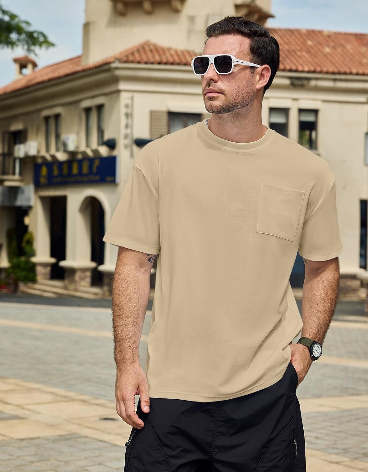 Men’s Oversized Cotton T-Shirt Short Sleeve Casual Crew Neck Solid Pocket Tee Basic Workout Tops